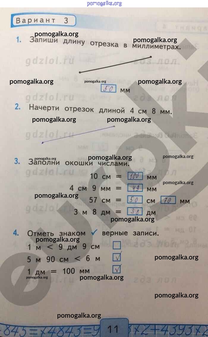 Готовые ответы - Математика 2 класс Контрольные работы Рудницкая В.Н. (к уч. Моро) - Измерение длин часть 1 Вар-3