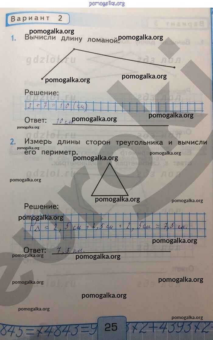 Готовые ответы - Математика 2 класс Контрольные работы Рудницкая В.Н. (к уч. Моро) - Вычисление длины ломаной и периметра многоугольника часть 1 Вар-2