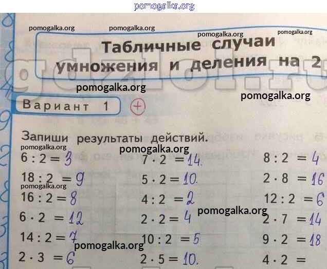 Готовые ответы - Математика 2 класс Контрольные работы Рудницкая В.Н. (к уч. Моро) - Табличные случаи умножения и деления на 2 часть 2 Вар-1