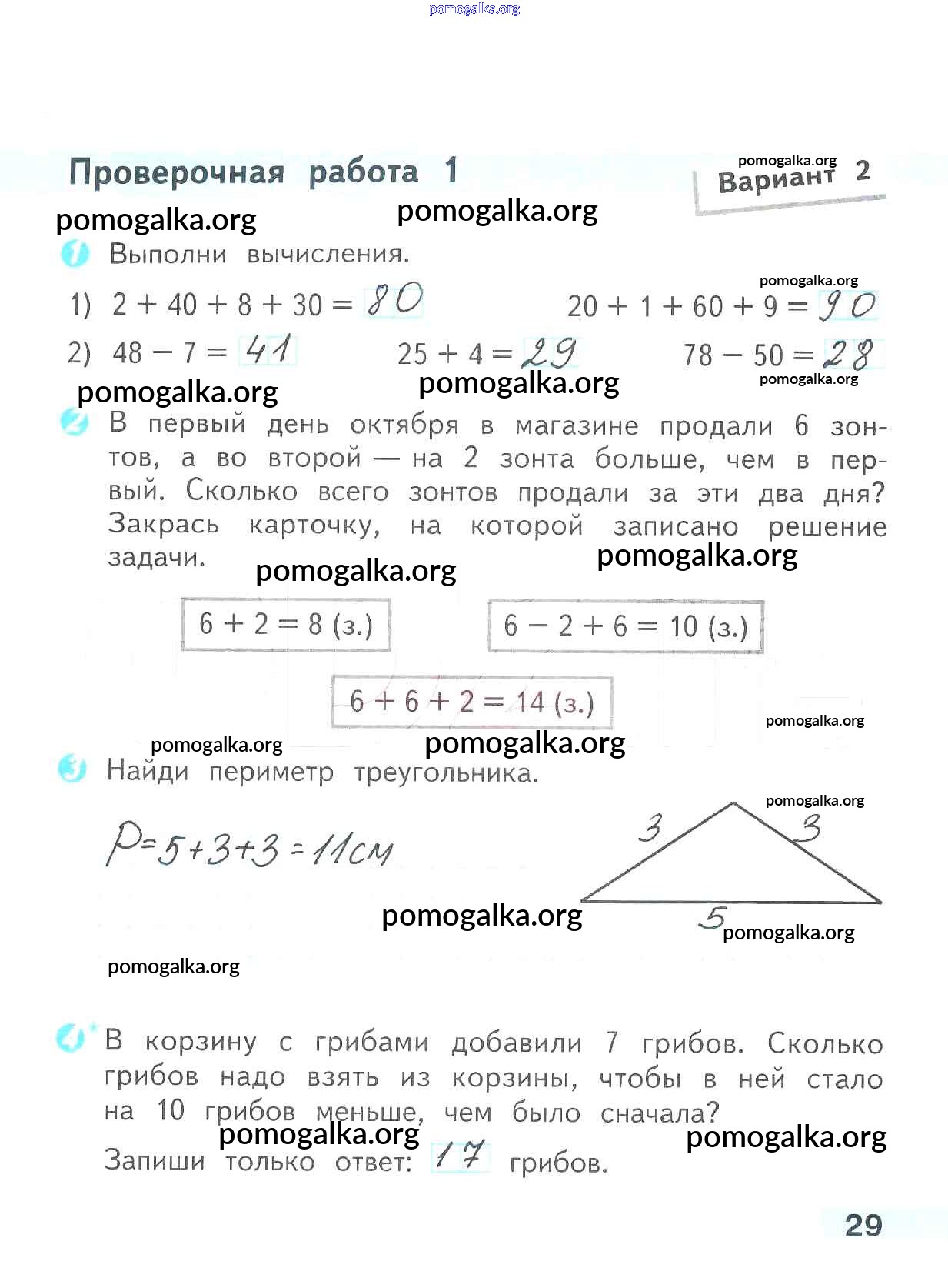 Готовые ответы - Математика 2 класс проверочные работы Волкова С.И. - страница 29