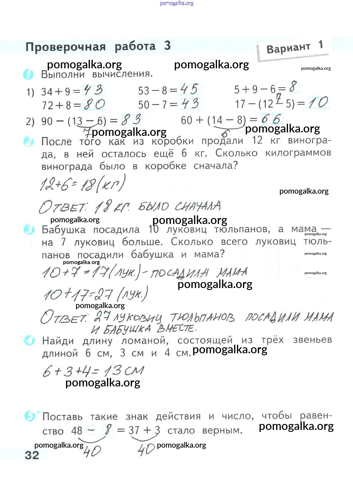 Готовые ответы - Математика 2 класс проверочные работы Волкова С.И. - страница 32