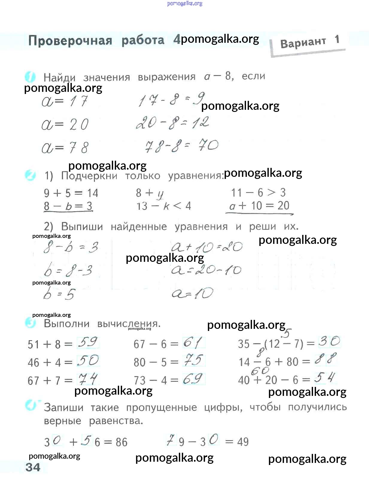Готовые ответы - Математика 2 класс проверочные работы Волкова С.И. - страница 34