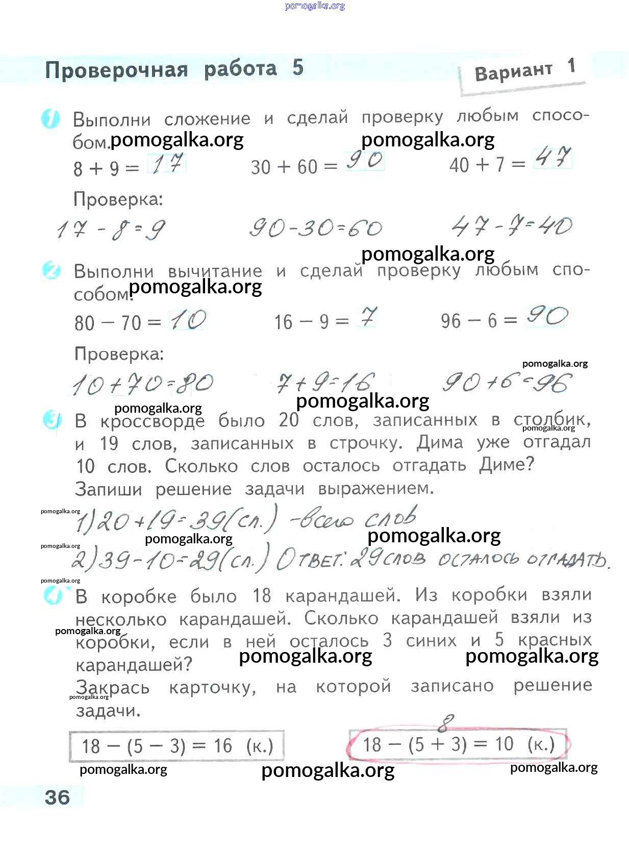 Готовые ответы - Математика 2 класс проверочные работы Волкова С.И. - страница 36