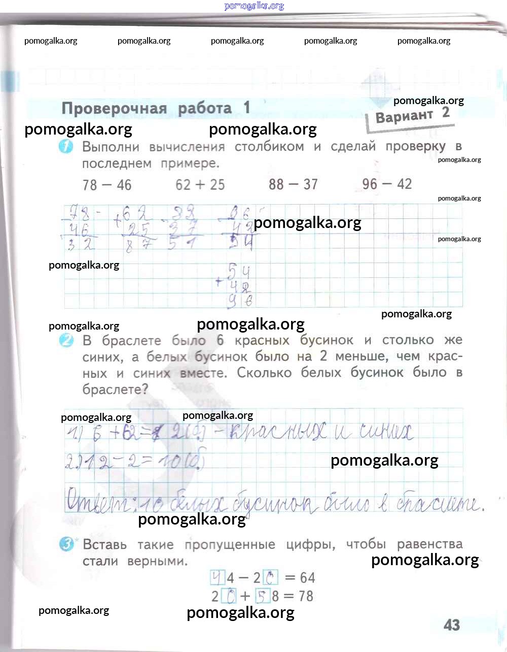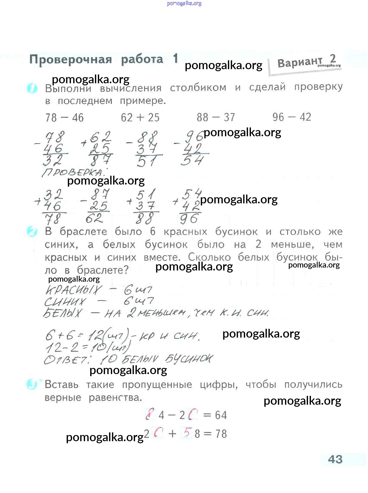 Готовые ответы - Математика 2 класс проверочные работы Волкова С.И. - страница 43