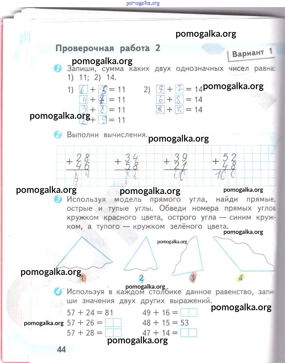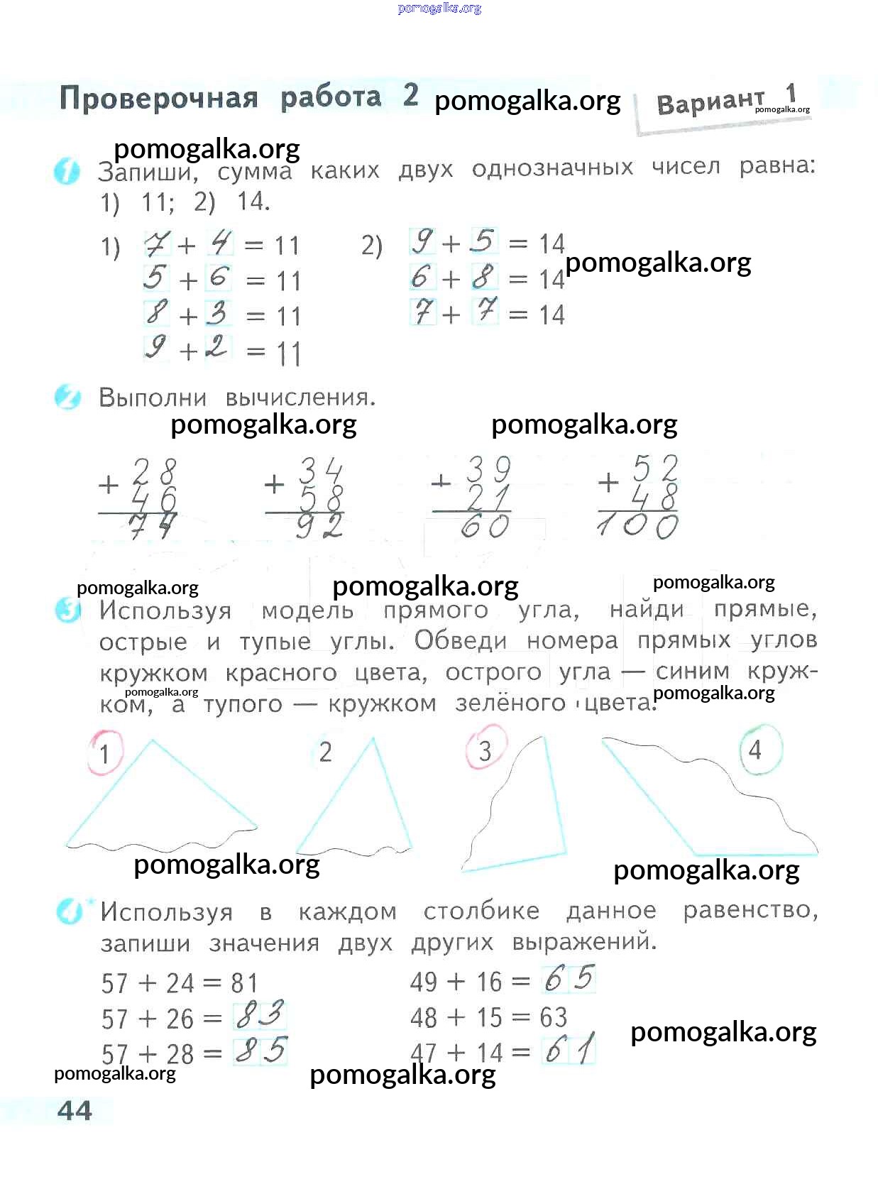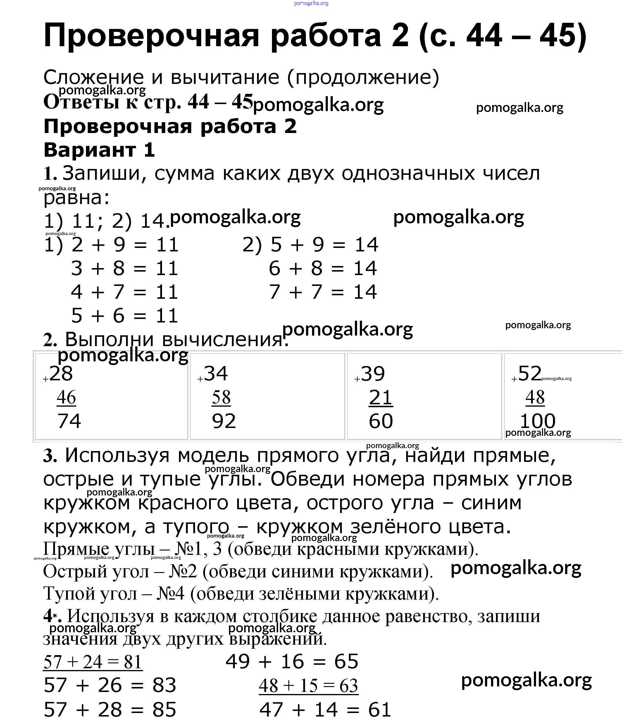 Готовые ответы - Математика 2 класс проверочные работы Волкова С.И. - страница 44