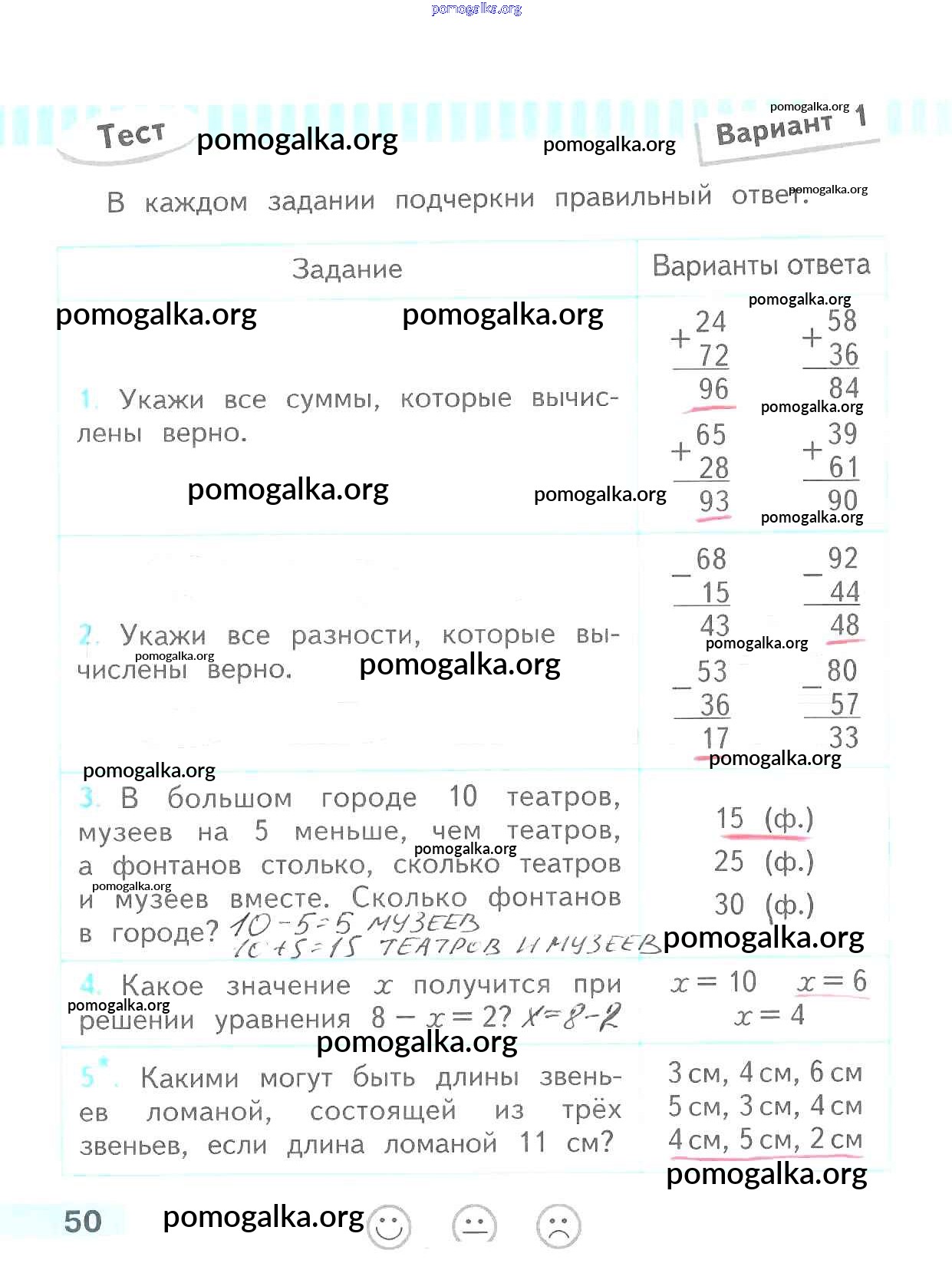 Готовые ответы - Математика 2 класс проверочные работы Волкова С.И. - страница 50