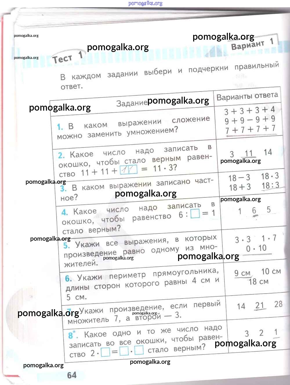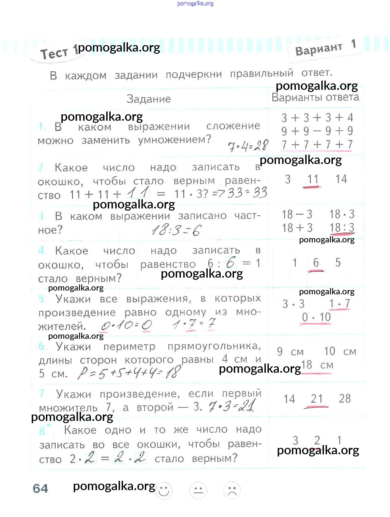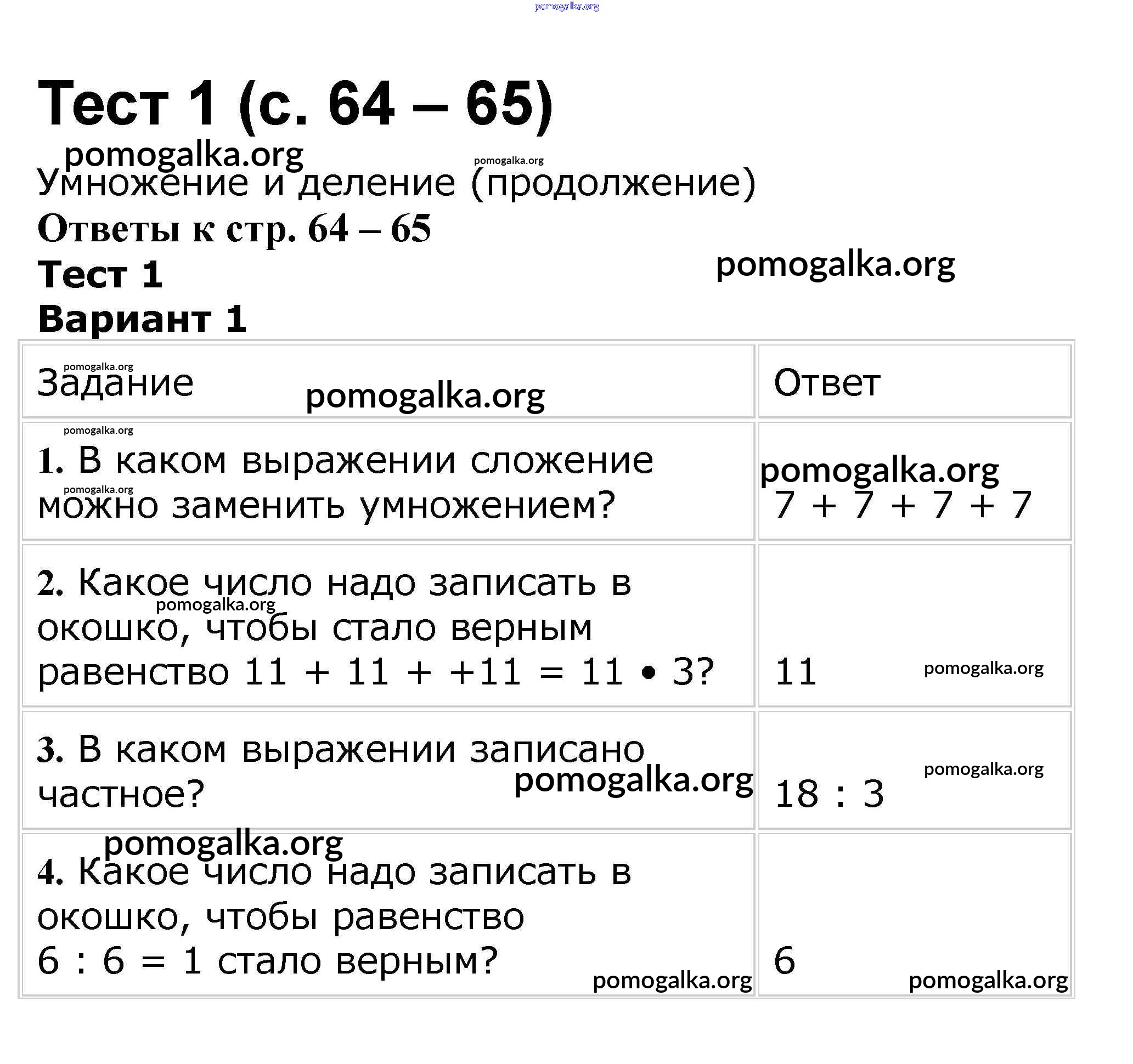 Готовые ответы - Математика 2 класс проверочные работы Волкова С.И. - страница 64