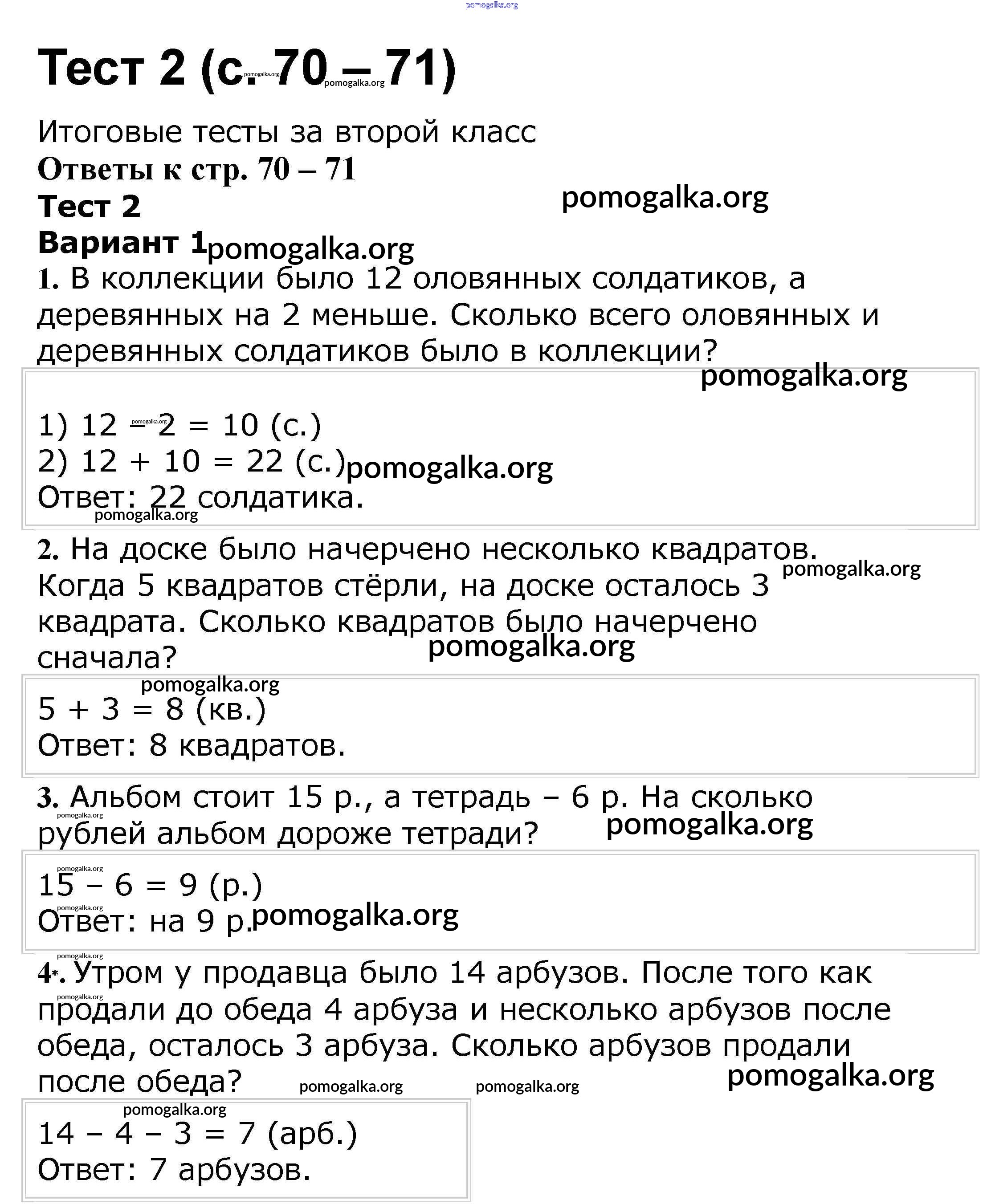 Готовые ответы - Математика 2 класс проверочные работы Волкова С.И. - страница 70