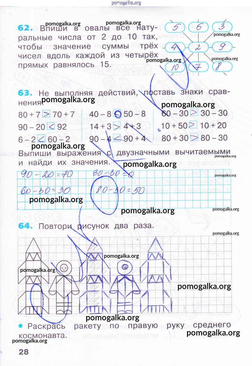 Готовые ответы - Математика 2 класс рабочая тетрадь Бененсон Е.П. ( к уч. Аргинской И.И.) - тетрадь 1. страница 28