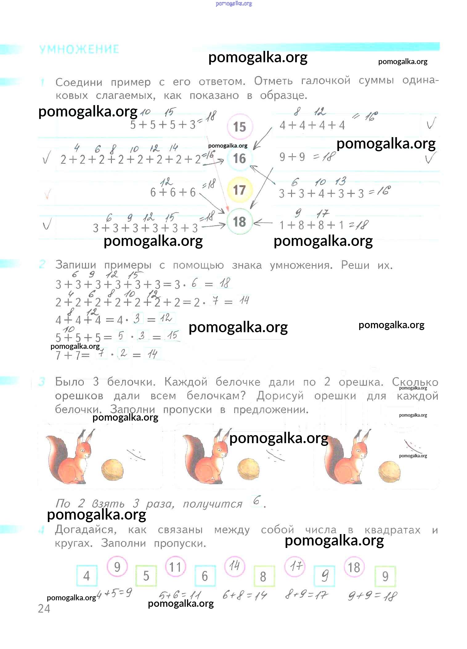 Готовые ответы - Математика 2 класс рабочая тетрадь Дорофеев Г.В. - часть 1. страница 24