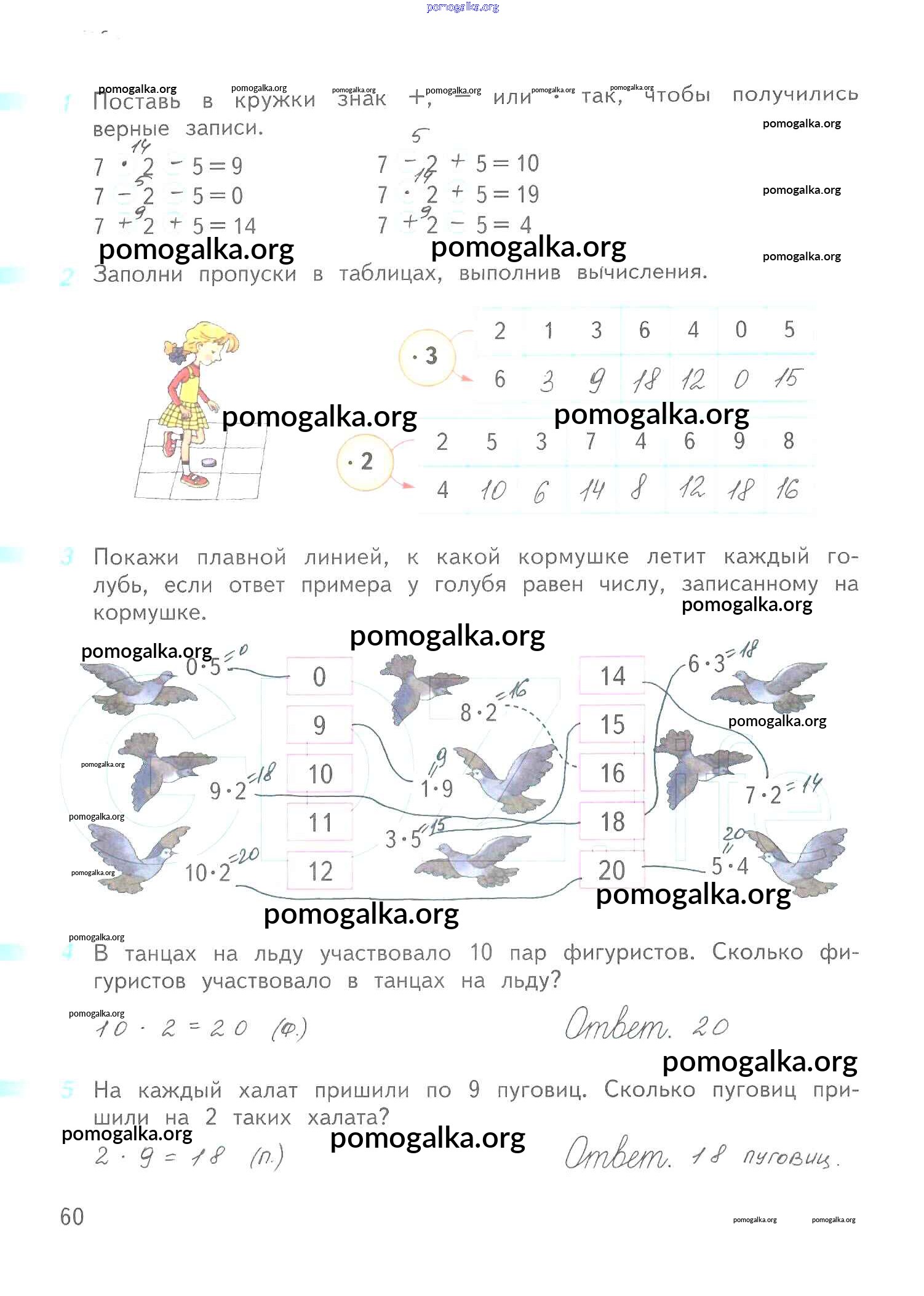 Готовые ответы - Математика 2 класс рабочая тетрадь Дорофеев Г.В. - часть 1. страница 60