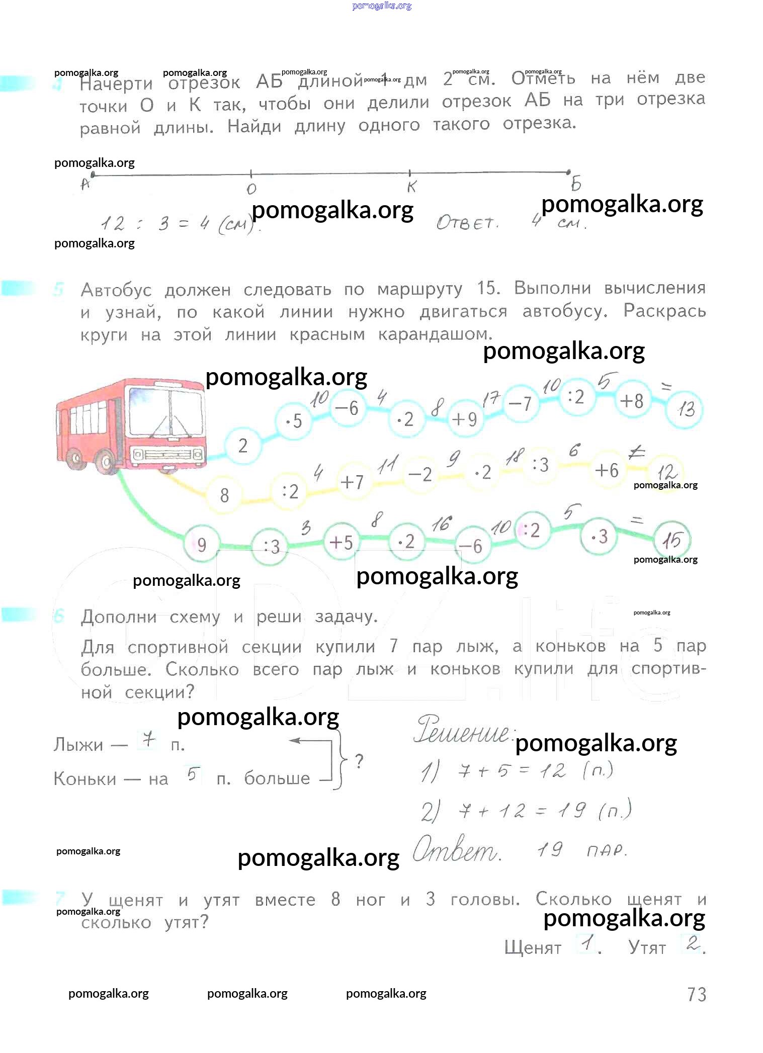 Готовые ответы - Математика 2 класс рабочая тетрадь Дорофеев Г.В. - часть 1. страница 73