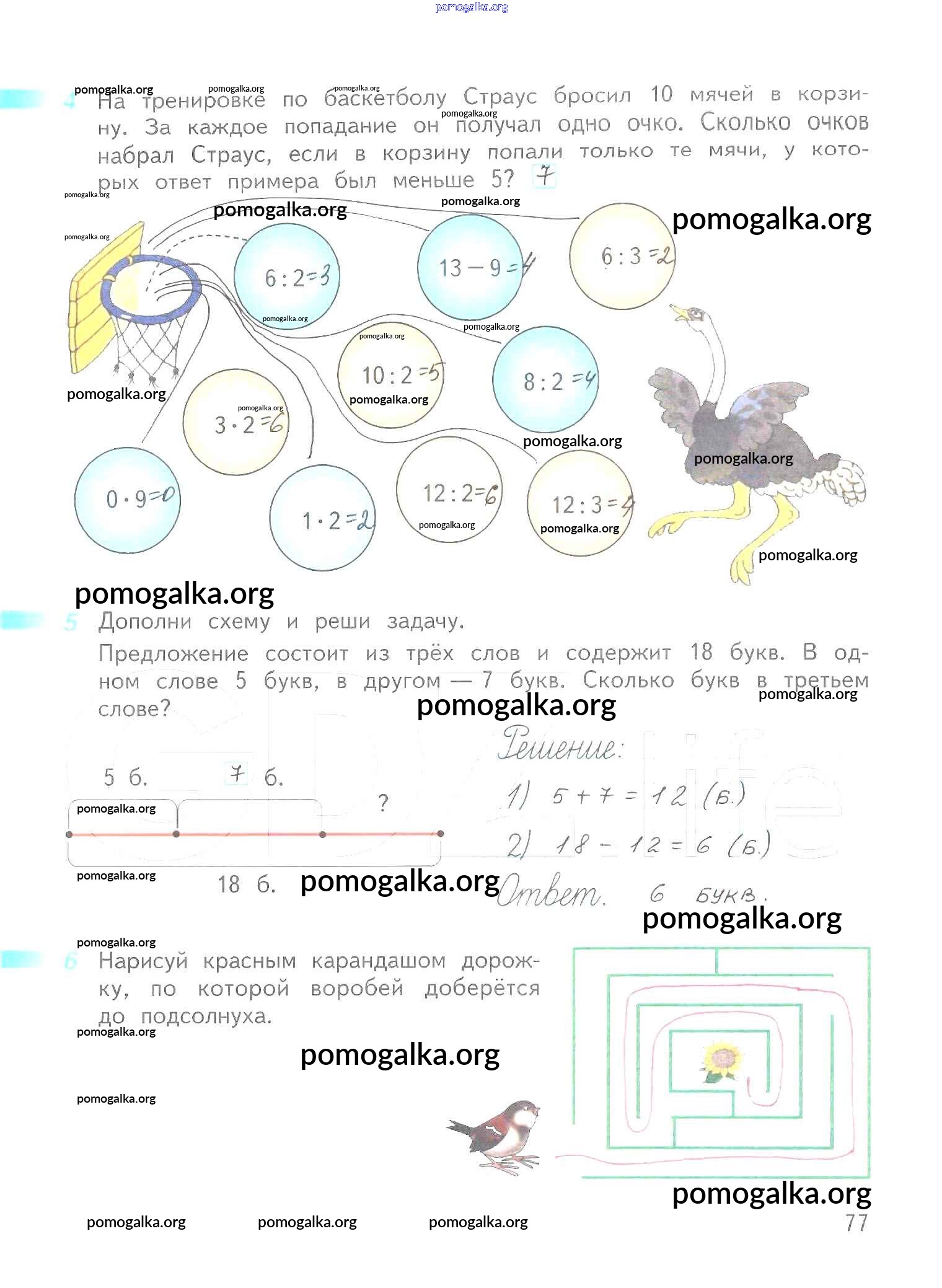 Готовые ответы - Математика 2 класс рабочая тетрадь Дорофеев Г.В. - часть 1. страница 77