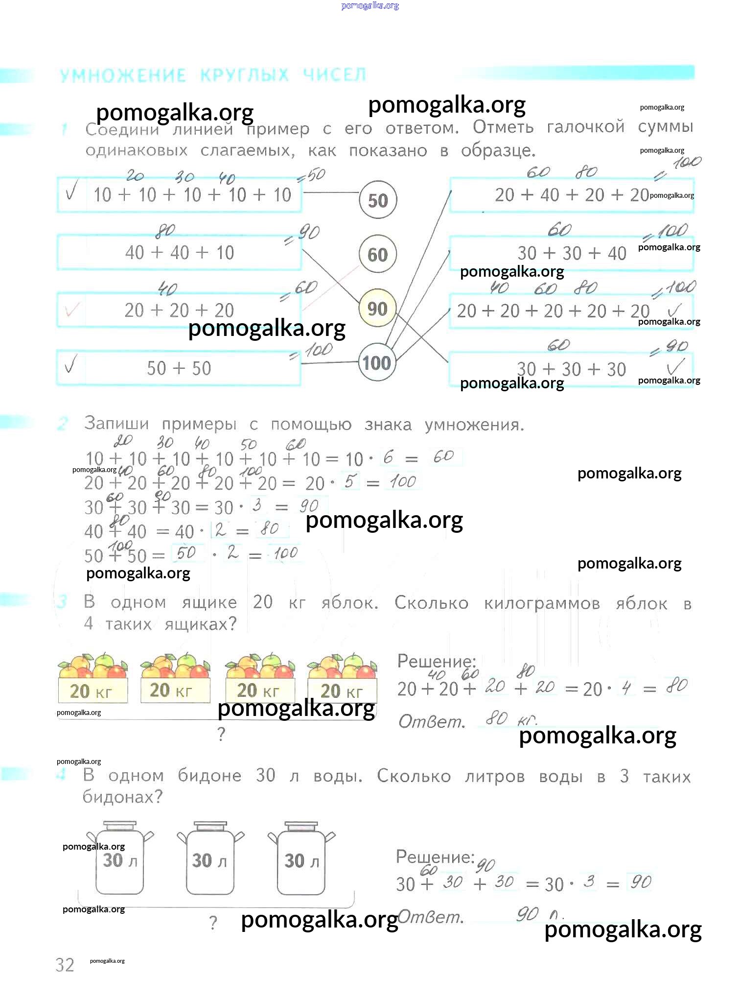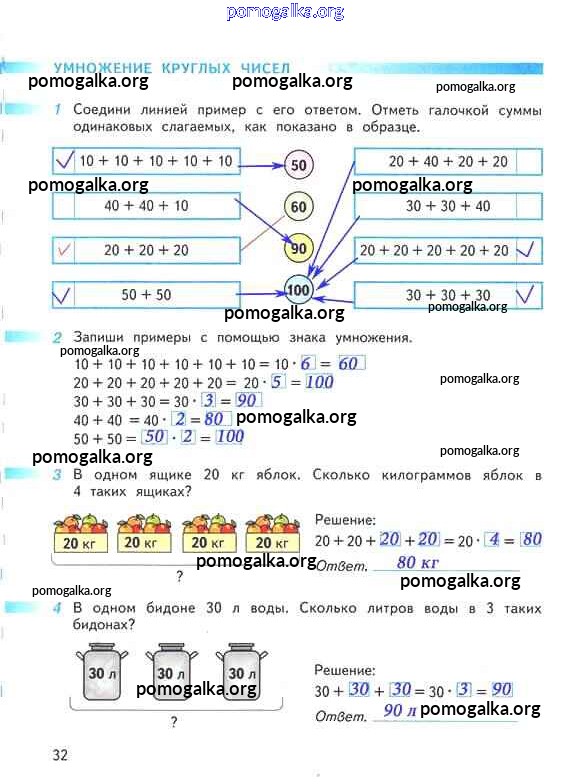 Готовые ответы - Математика 2 класс рабочая тетрадь Дорофеев Г.В. - часть 2. страница 32