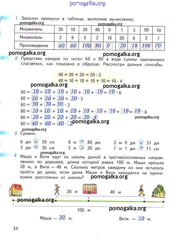 Готовые ответы - Математика 2 класс рабочая тетрадь Дорофеев Г.В. - часть 2. страница 34