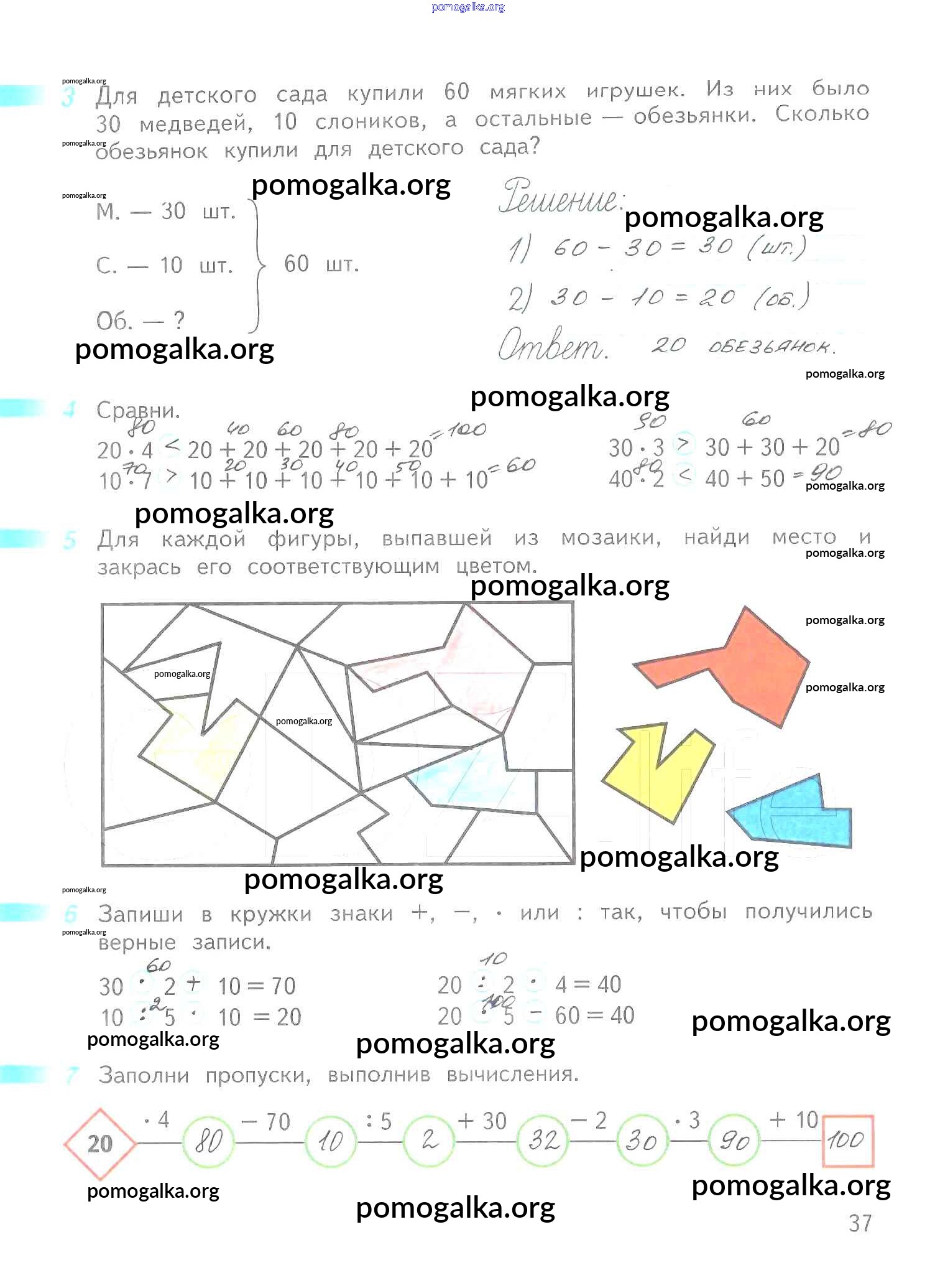 Готовые ответы - Математика 2 класс рабочая тетрадь Дорофеев Г.В. - часть 2. страница 37