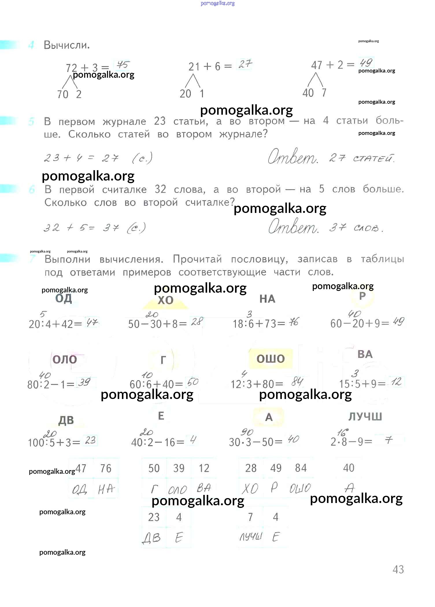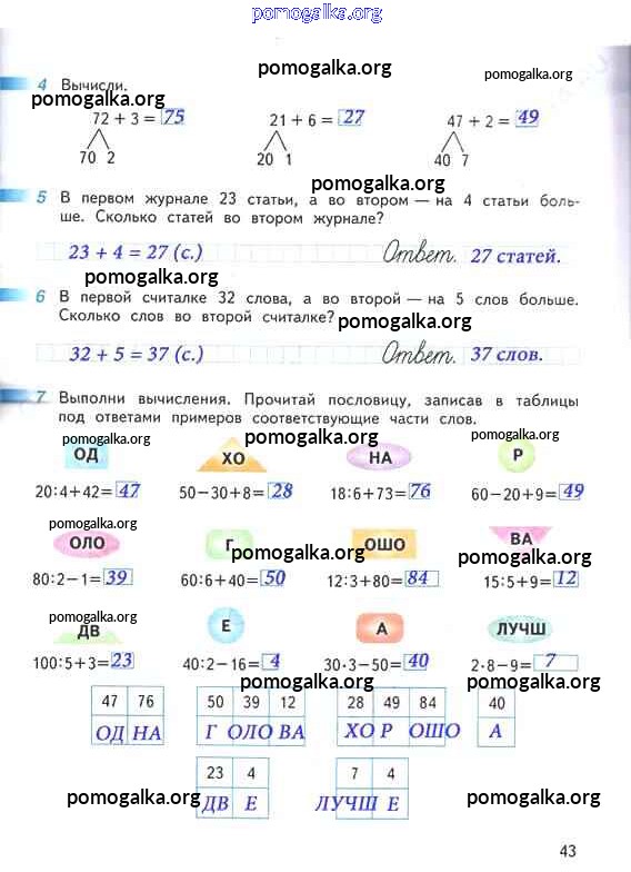 Готовые ответы - Математика 2 класс рабочая тетрадь Дорофеев Г.В. - часть 2. страница 43