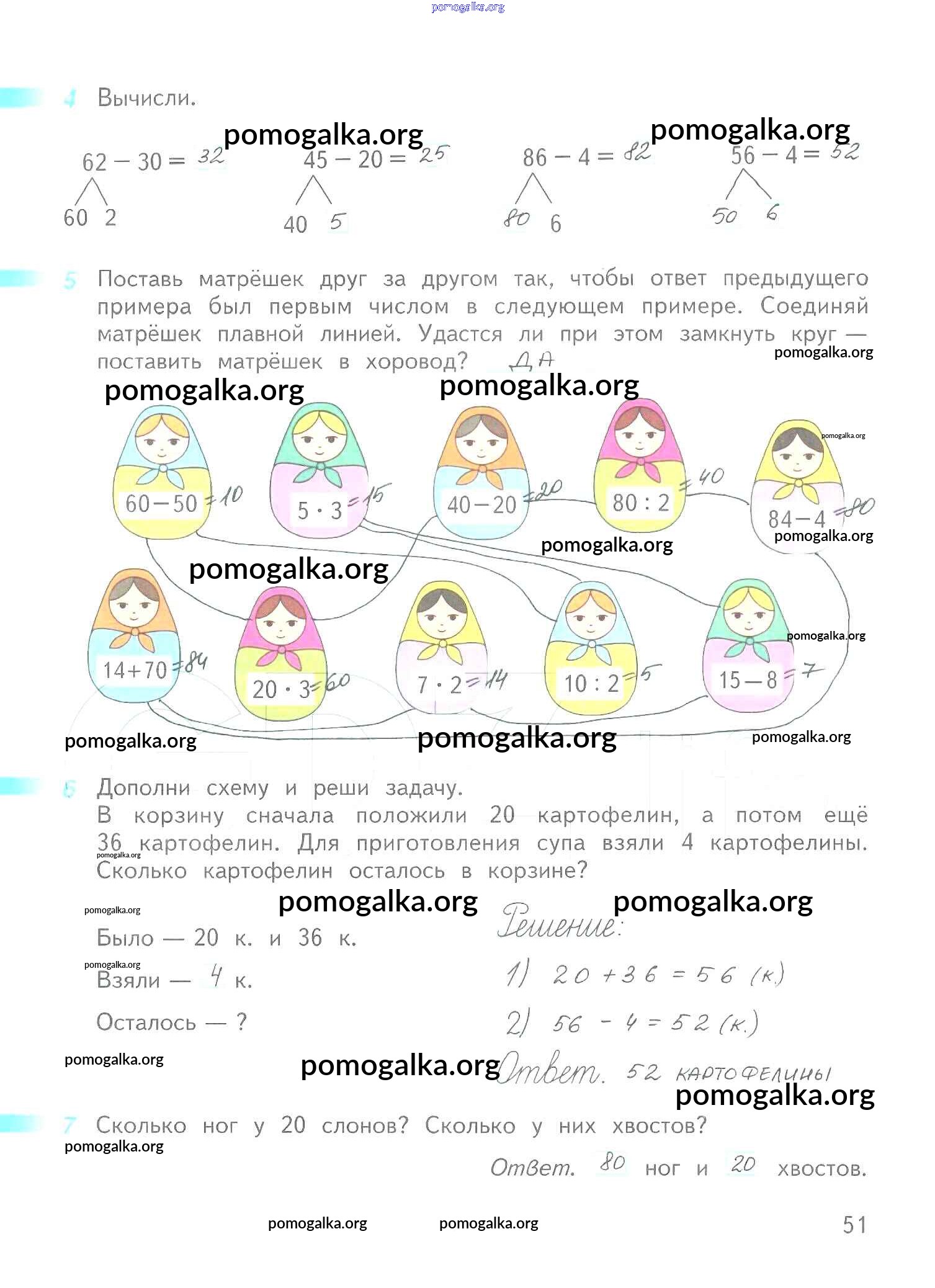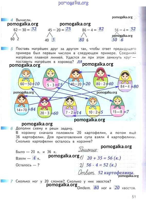 Готовые ответы - Математика 2 класс рабочая тетрадь Дорофеев Г.В. - часть 2. страница 51