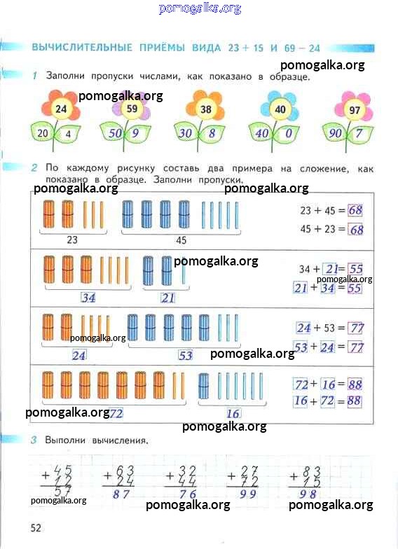 Готовые ответы - Математика 2 класс рабочая тетрадь Дорофеев Г.В. - часть 2. страница 52