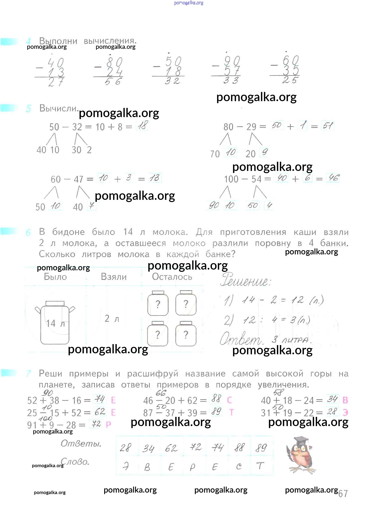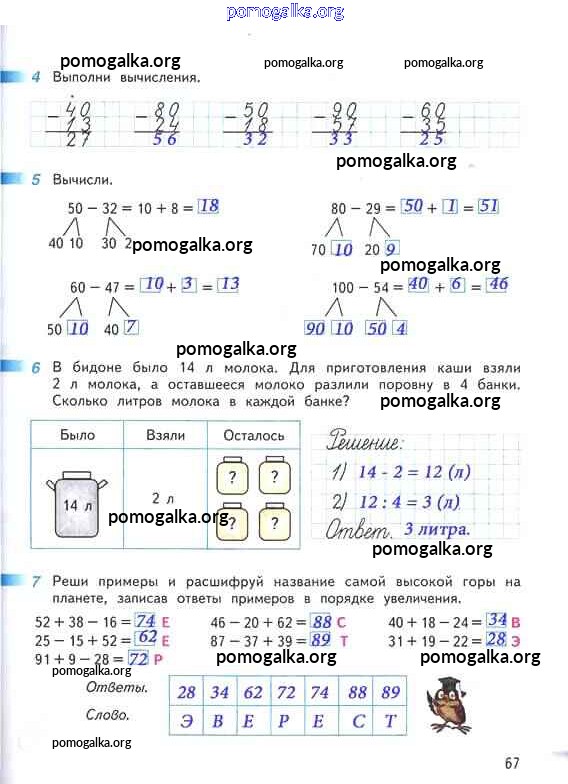 Готовые ответы - Математика 2 класс рабочая тетрадь Дорофеев Г.В. - часть 2. страница 67