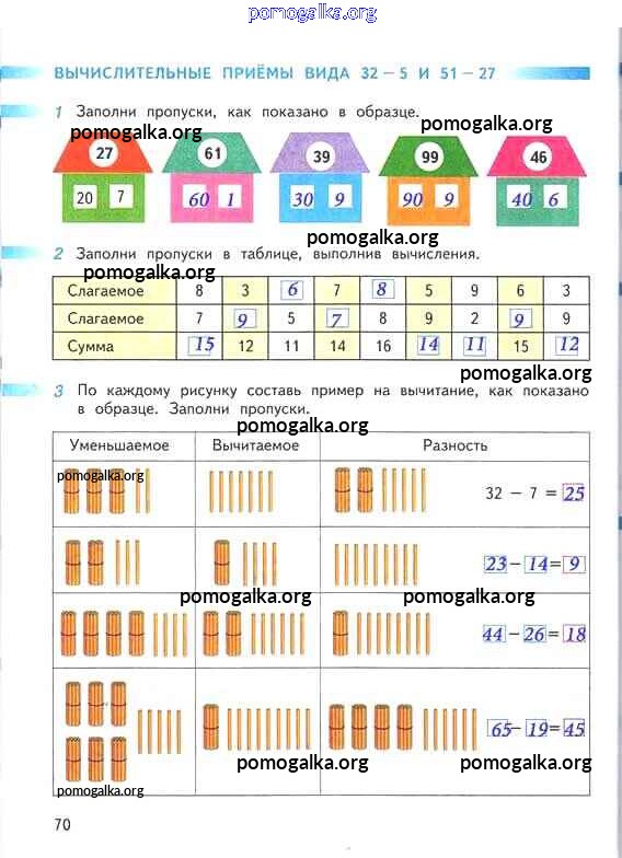 Готовые ответы - Математика 2 класс рабочая тетрадь Дорофеев Г.В. - часть 2. страница 70