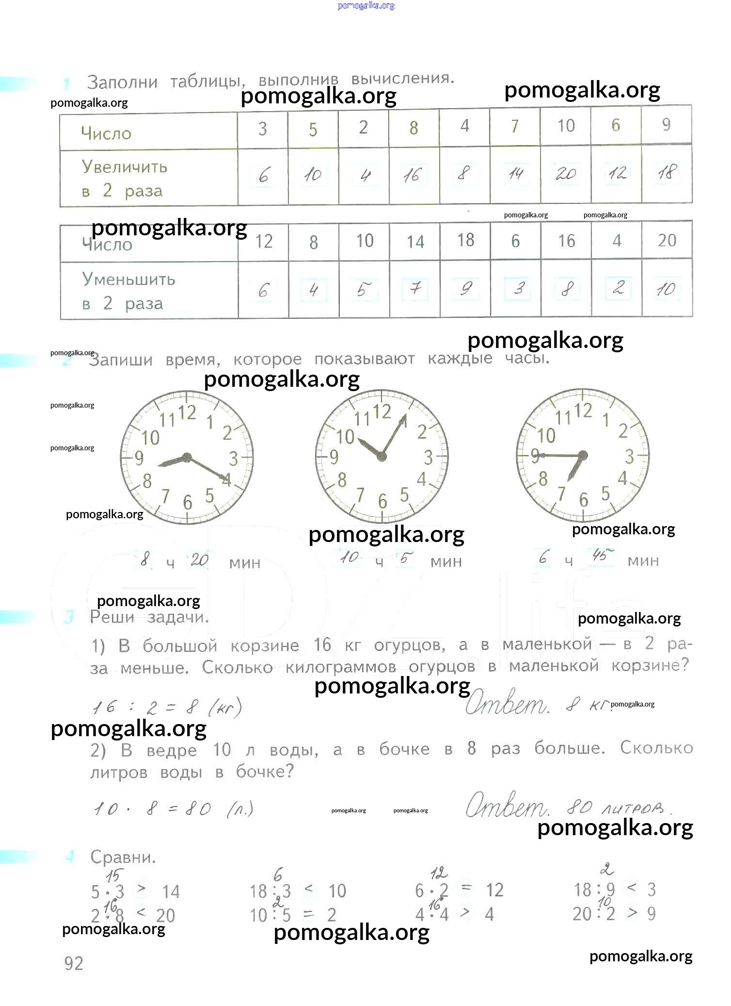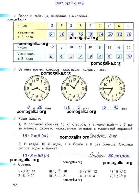 Готовые ответы - Математика 2 класс рабочая тетрадь Дорофеев Г.В. - часть 2. страница 92