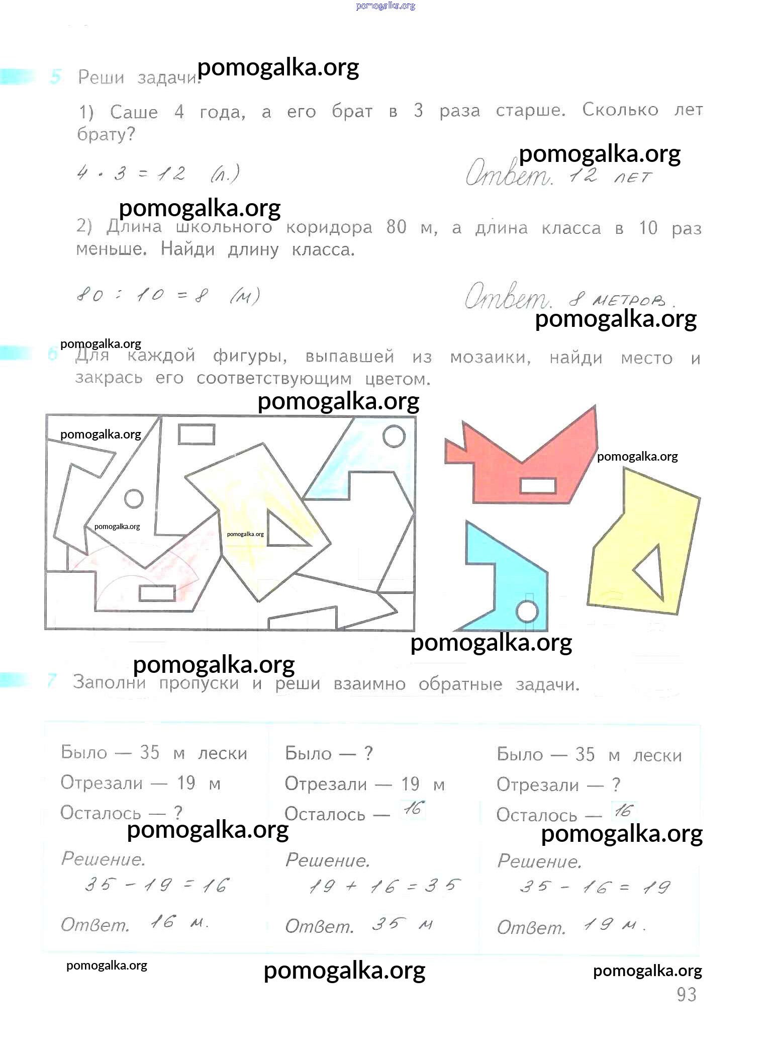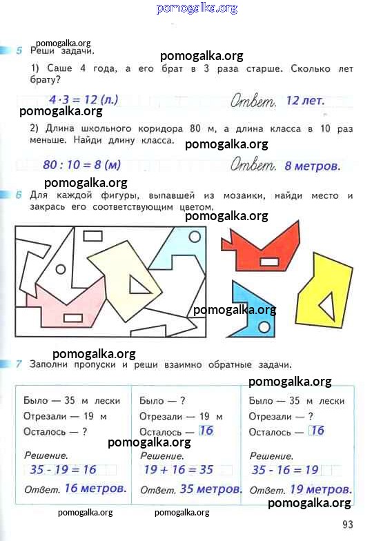 Готовые ответы - Математика 2 класс рабочая тетрадь Дорофеев Г.В. - часть 2. страница 93