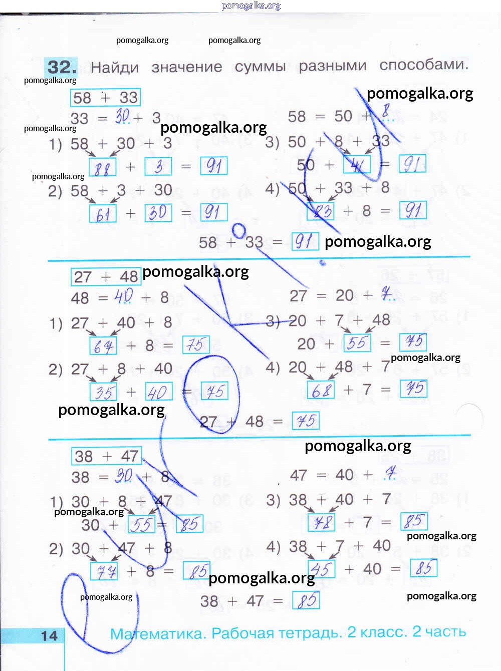 Готовые ответы - Математика 2 класс рабочая тетрадь Истомина Н.Б. - часть 2. страница 14
