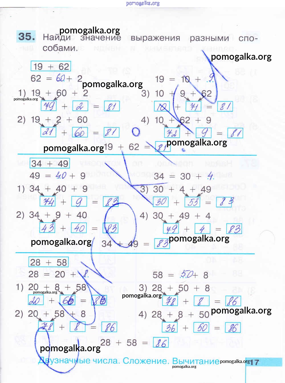 Готовые ответы - Математика 2 класс рабочая тетрадь Истомина Н.Б. - часть 2. страница 17