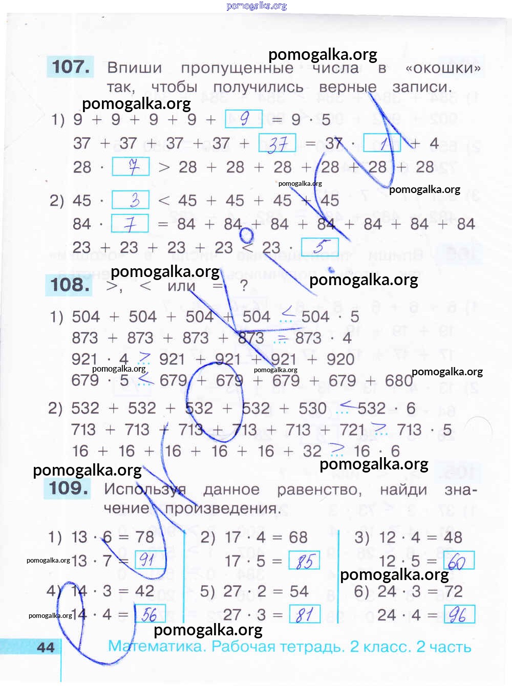 Готовые ответы - Математика 2 класс рабочая тетрадь Истомина Н.Б. - часть 2. страница 44