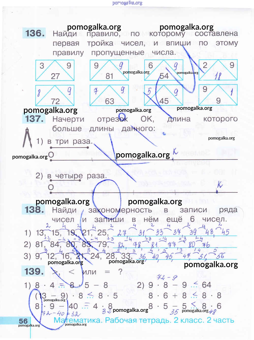 Готовые ответы - Математика 2 класс рабочая тетрадь Истомина Н.Б. - часть 2. страница 56