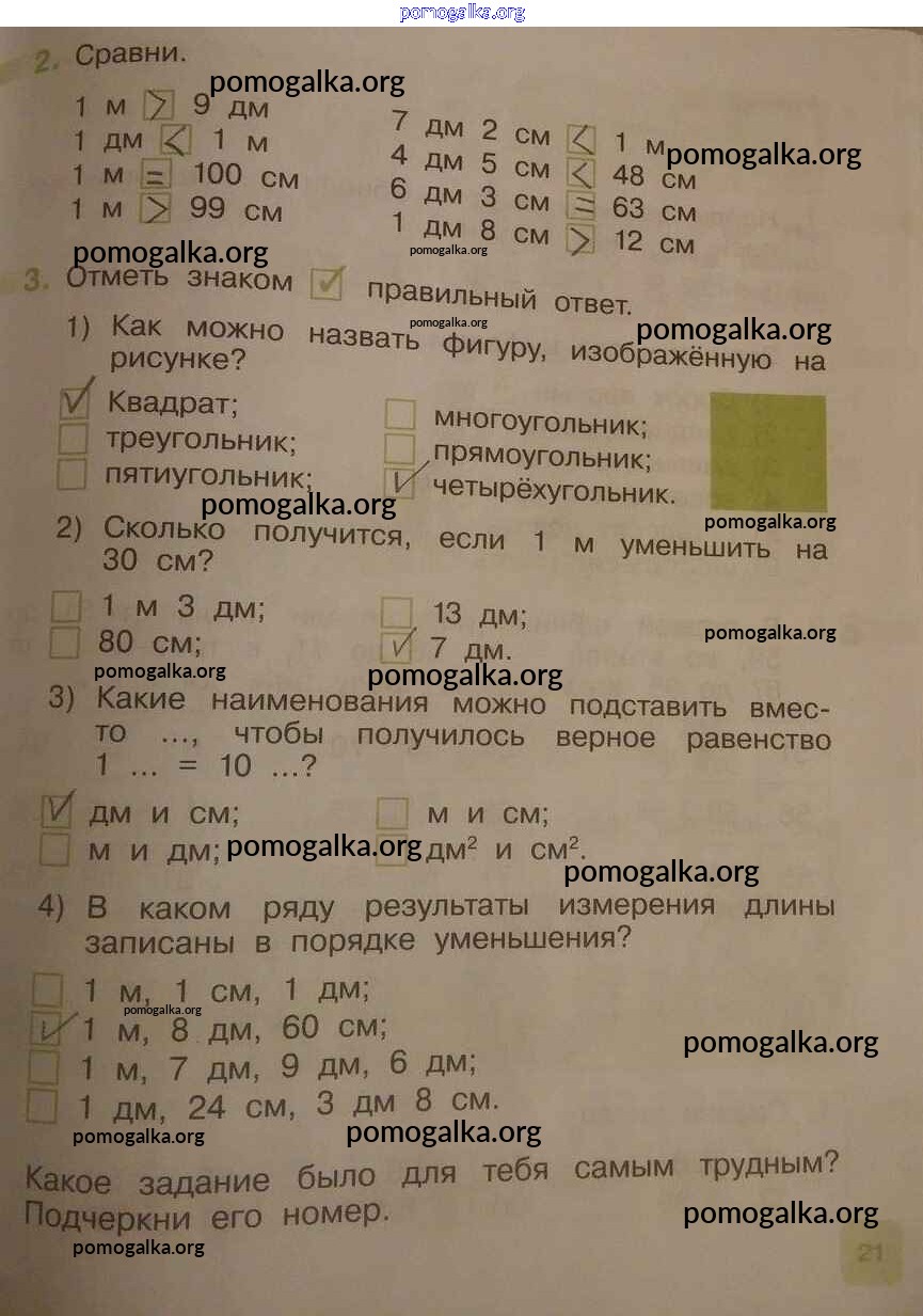 Готовые ответы - Математика 2 класс рабочая тетрадь Муравина О.В. - часть 1. страница 21