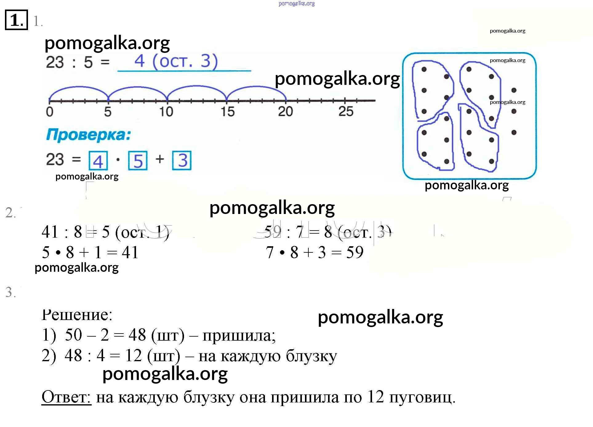 Готовые ответы - Математика 2 класс рабочая тетрадь Петерсон (Учусь учиться) - урок 31. деление с остатком часть 3 1