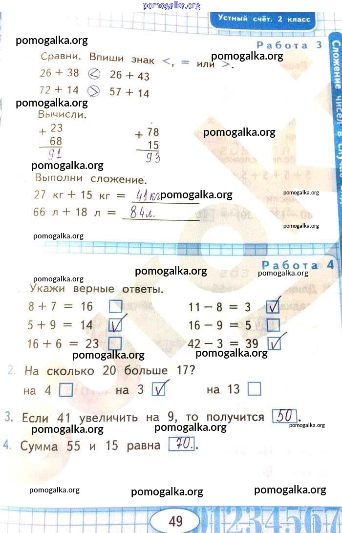 Готовые ответы - Математика 2 класс рабочая тетрадь Рудницкая В.Н. (к уч. Моро) - страница 49