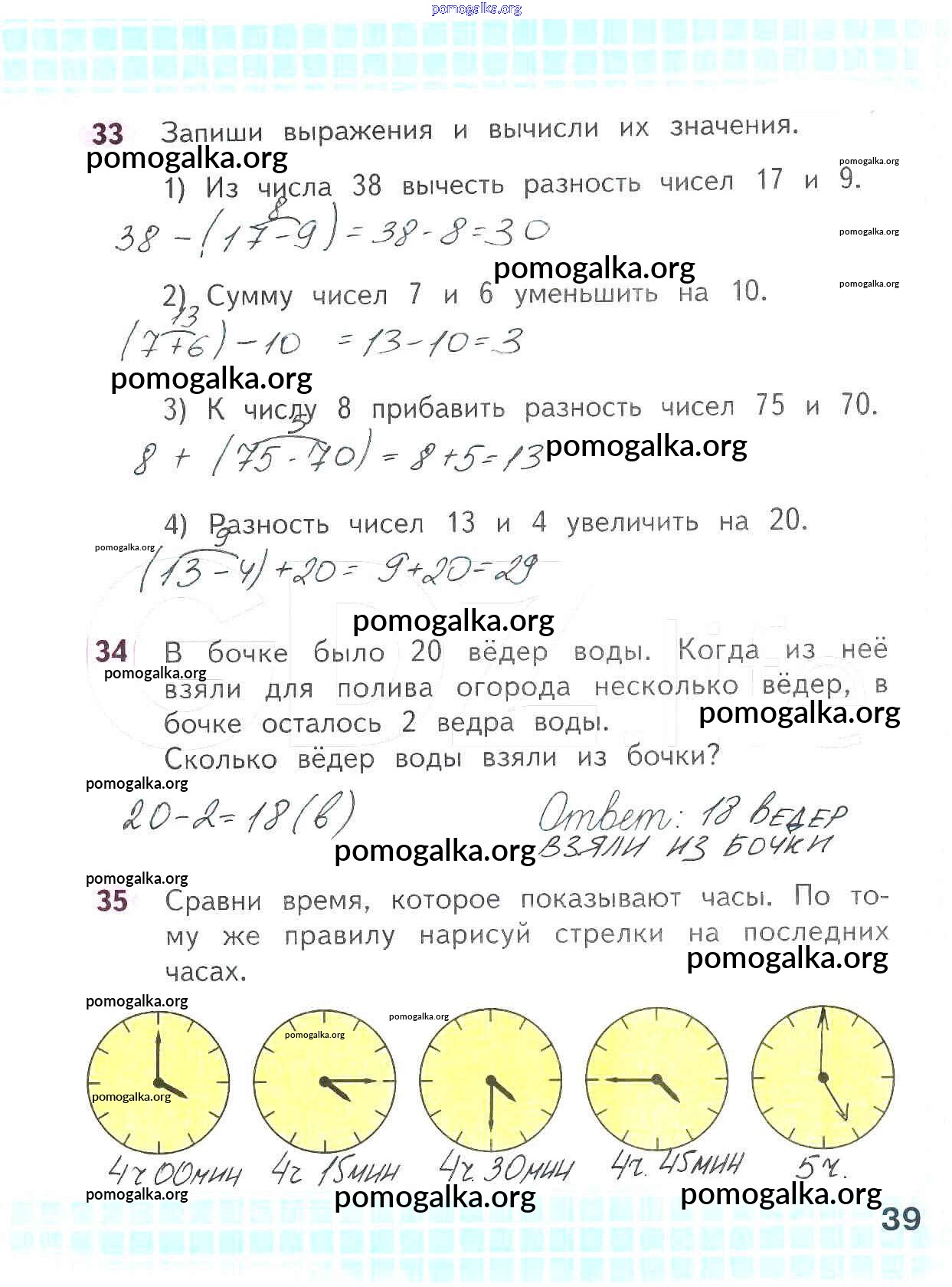 Готовые ответы - Математика 2 класс рабочая тетрадь Волкова С.И. - часть 1. страница 39