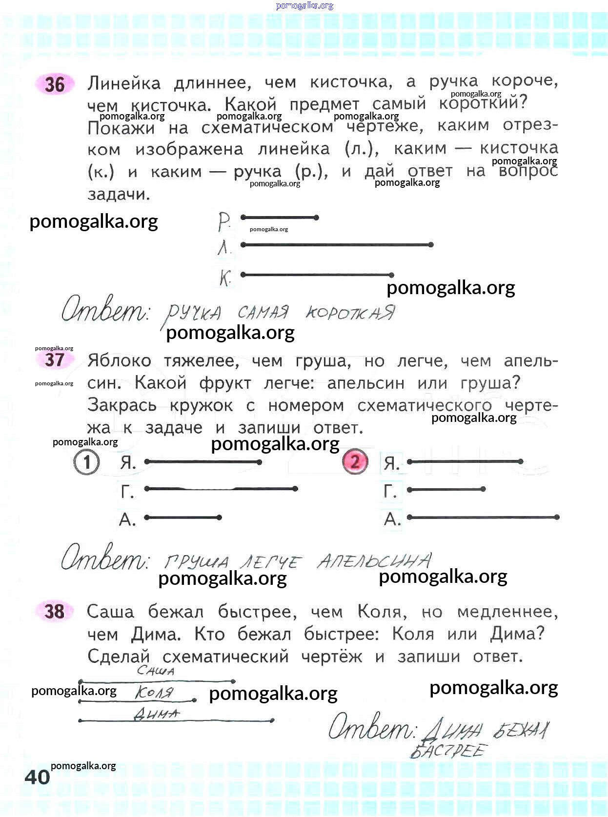 Готовые ответы - Математика 2 класс рабочая тетрадь Волкова С.И. - часть 1. страница 40