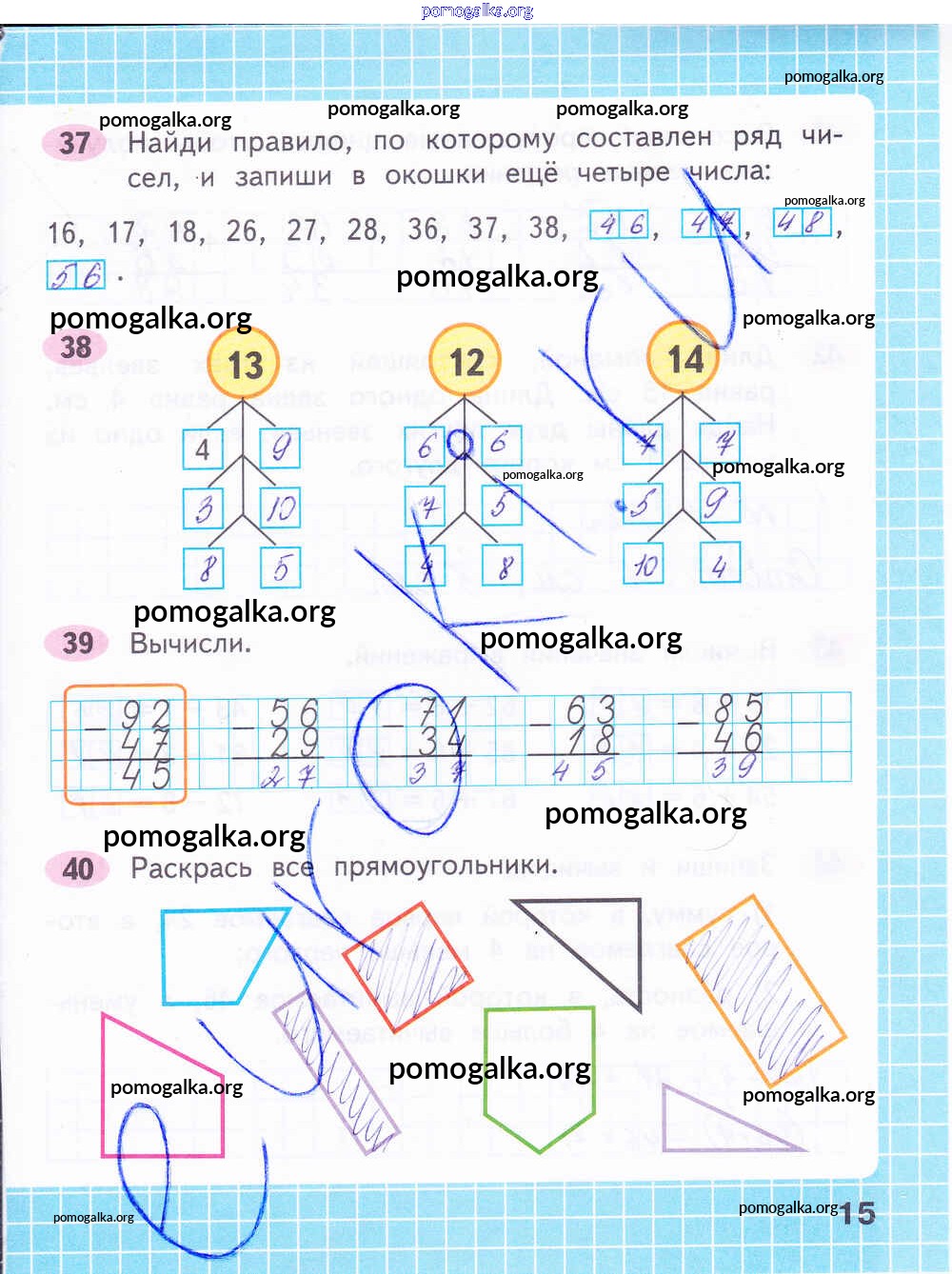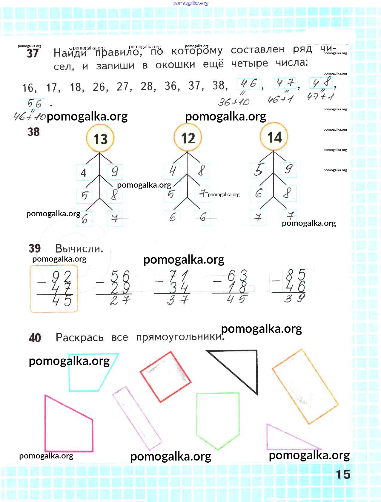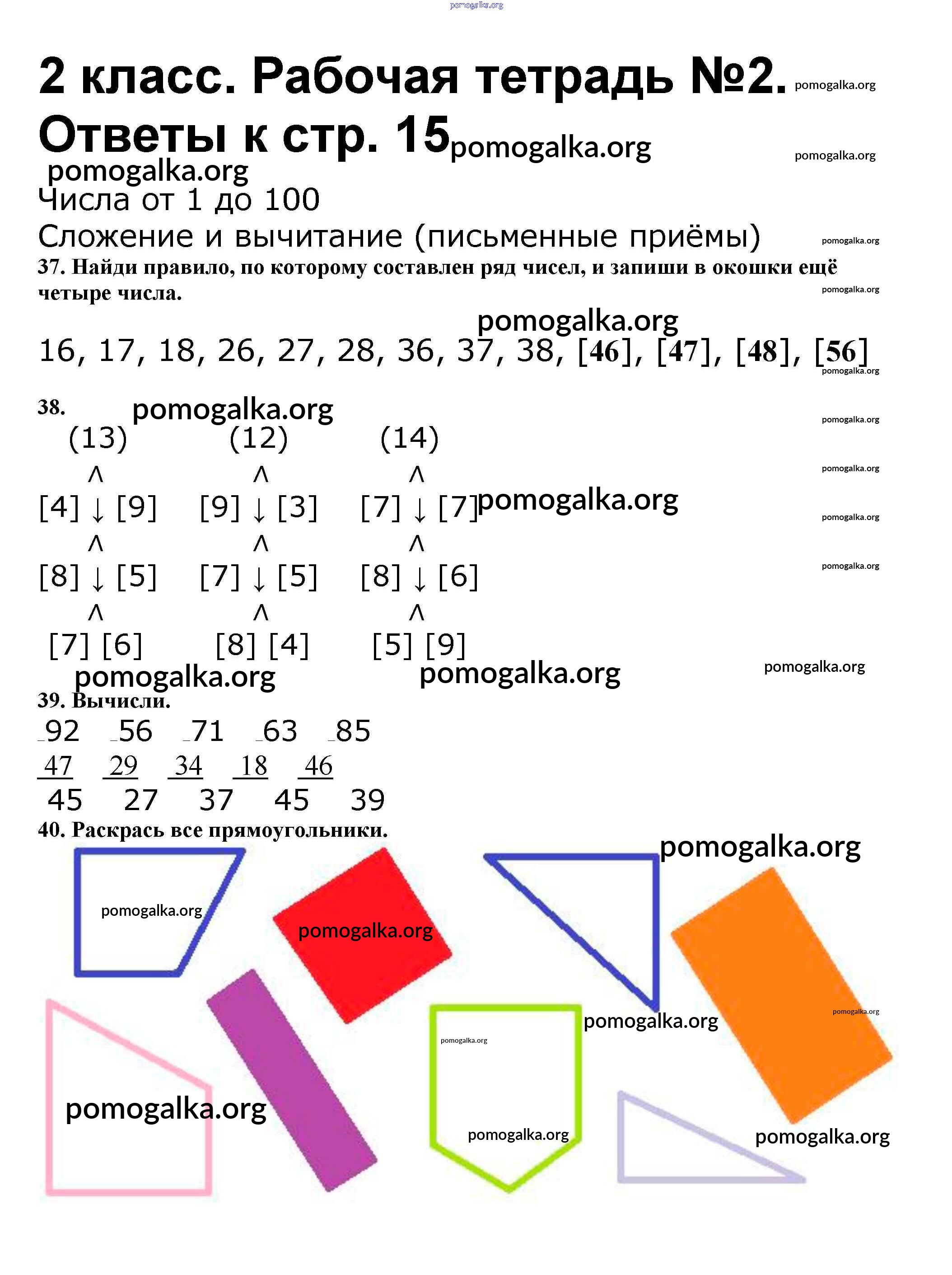 Готовые ответы - Математика 2 класс рабочая тетрадь Волкова С.И. - часть 2. страница 15