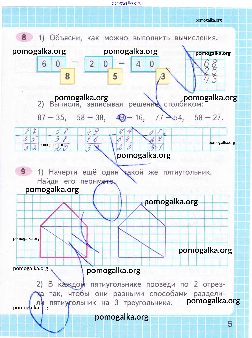 Готовые ответы - Математика 2 класс рабочая тетрадь Волкова С.И. - часть 2. страница 5