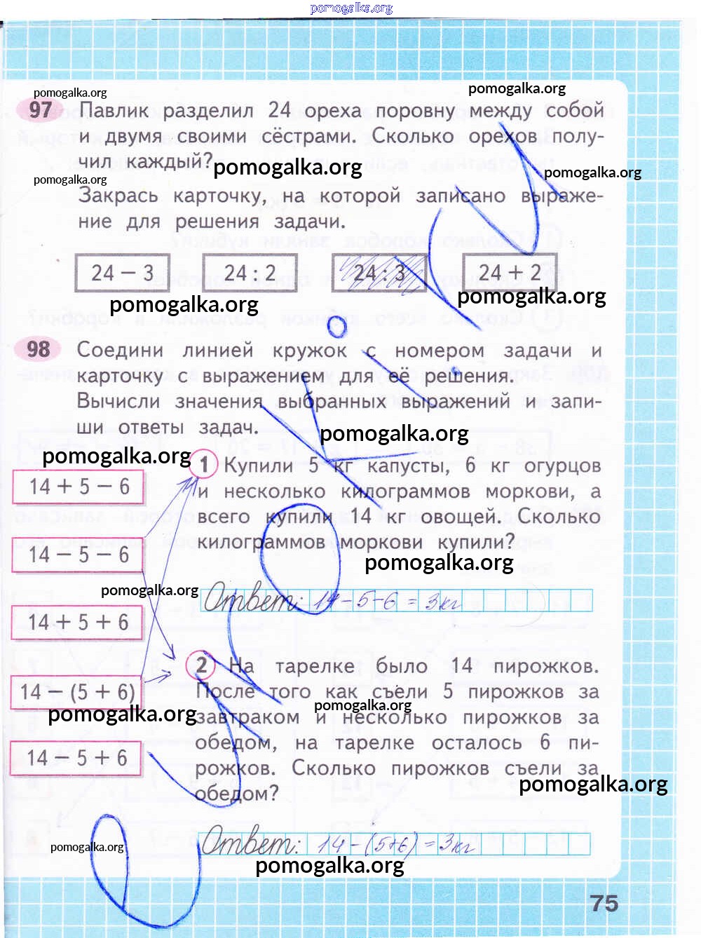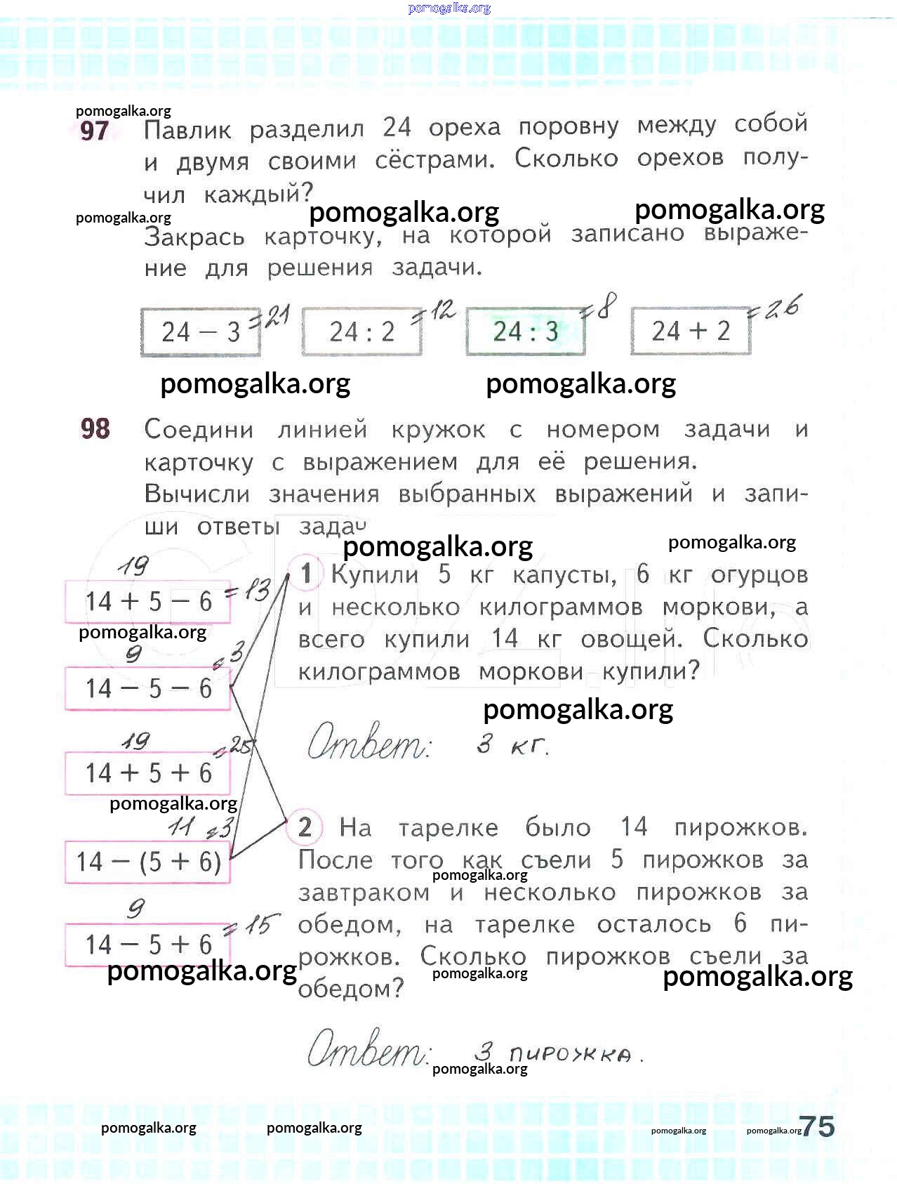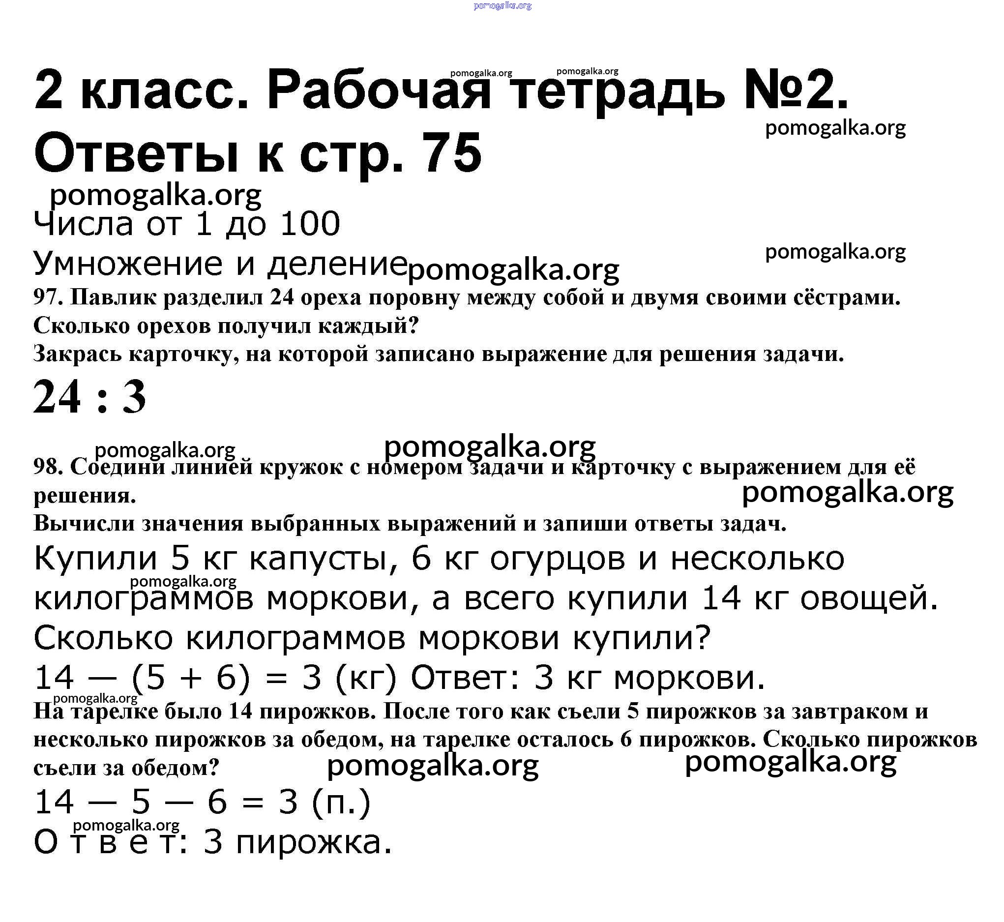Готовые ответы - Математика 2 класс рабочая тетрадь Волкова С.И. - часть 2. страница 75