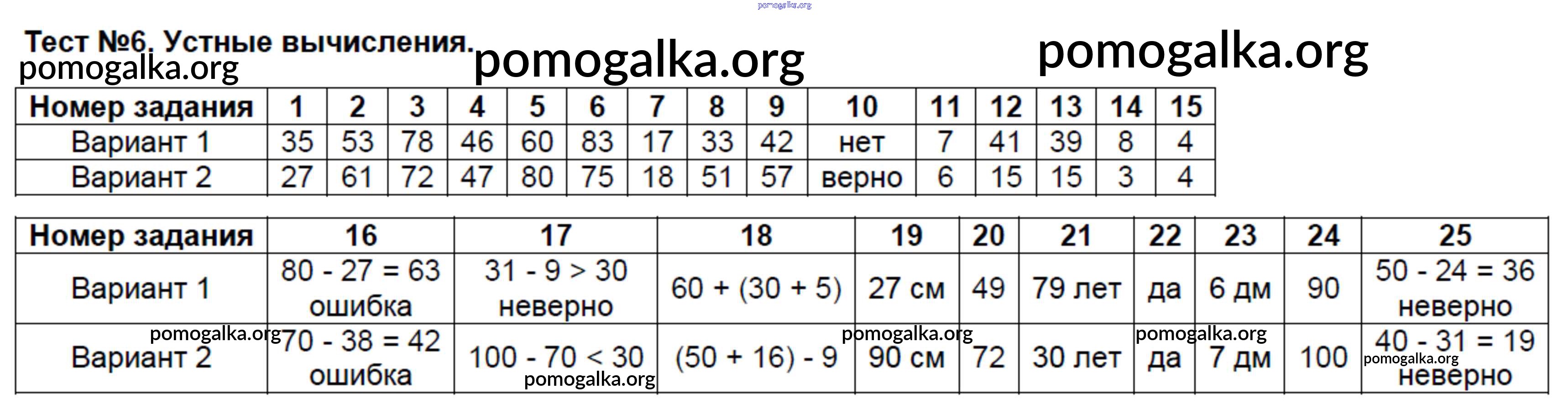 Готовые ответы - Математика 2 класс Рудницкая В.Н. (тесты) - часть 1. тест 6