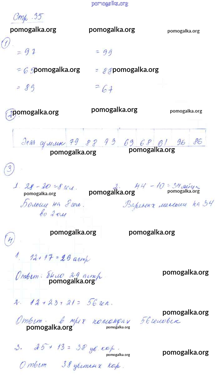 Готовые ответы - Математика 2 класс тетрадь для самостоятельной работы Захарова О.А. - часть 1. страница 35