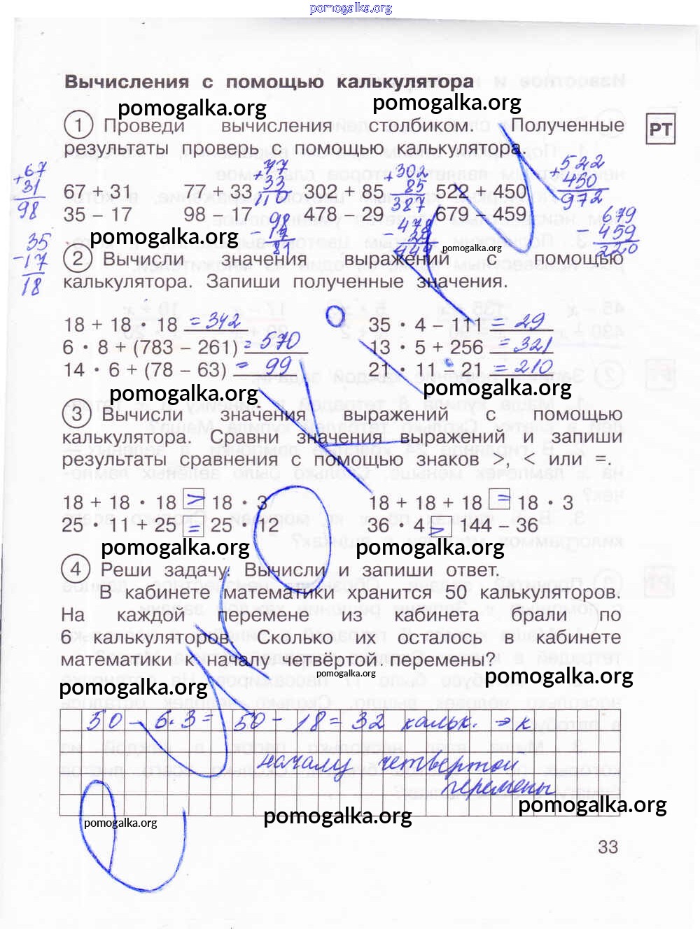 Готовые ответы - Математика 2 класс тетрадь для самостоятельной работы Захарова О.А. - часть 2. страница 33