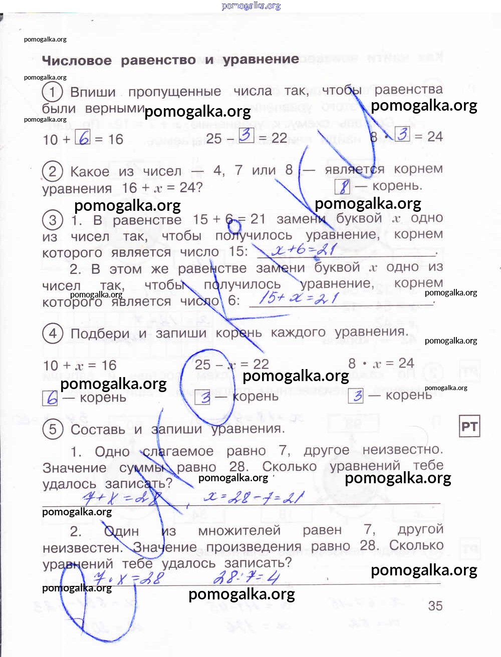 Готовые ответы - Математика 2 класс тетрадь для самостоятельной работы Захарова О.А. - часть 2. страница 35