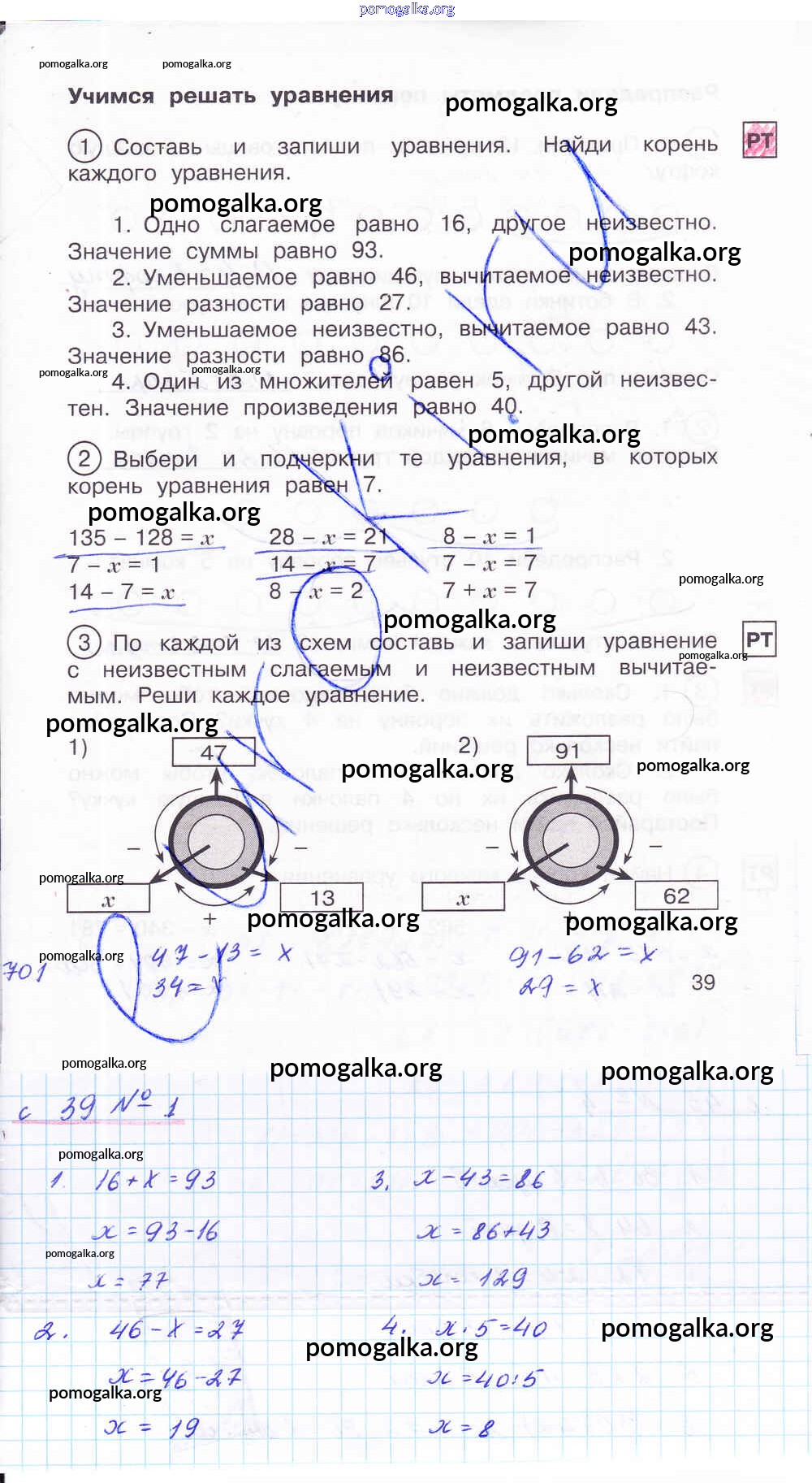 Готовые ответы - Математика 2 класс тетрадь для самостоятельной работы Захарова О.А. - часть 2. страница 39