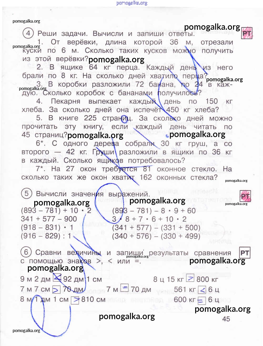 Готовые ответы - Математика 2 класс тетрадь для самостоятельной работы Захарова О.А. - часть 2. страница 45