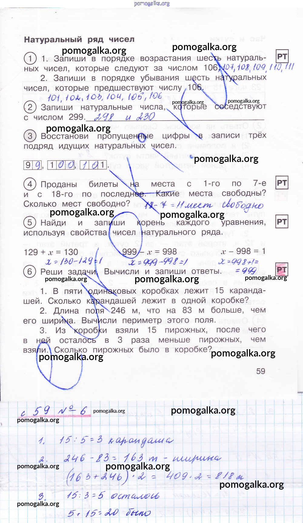 Готовые ответы - Математика 2 класс тетрадь для самостоятельной работы Захарова О.А. - часть 2. страница 59