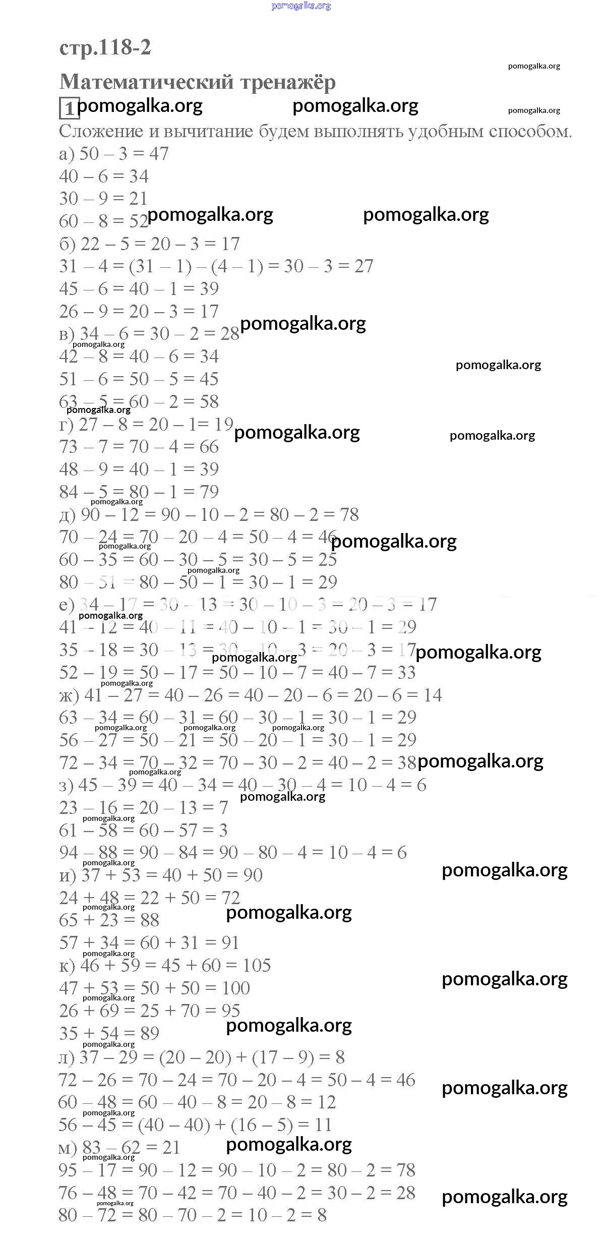 Готовые ответы - Математика 2 класс Башмаков М.И. - стр. 118 вычисления в пределах 100 1