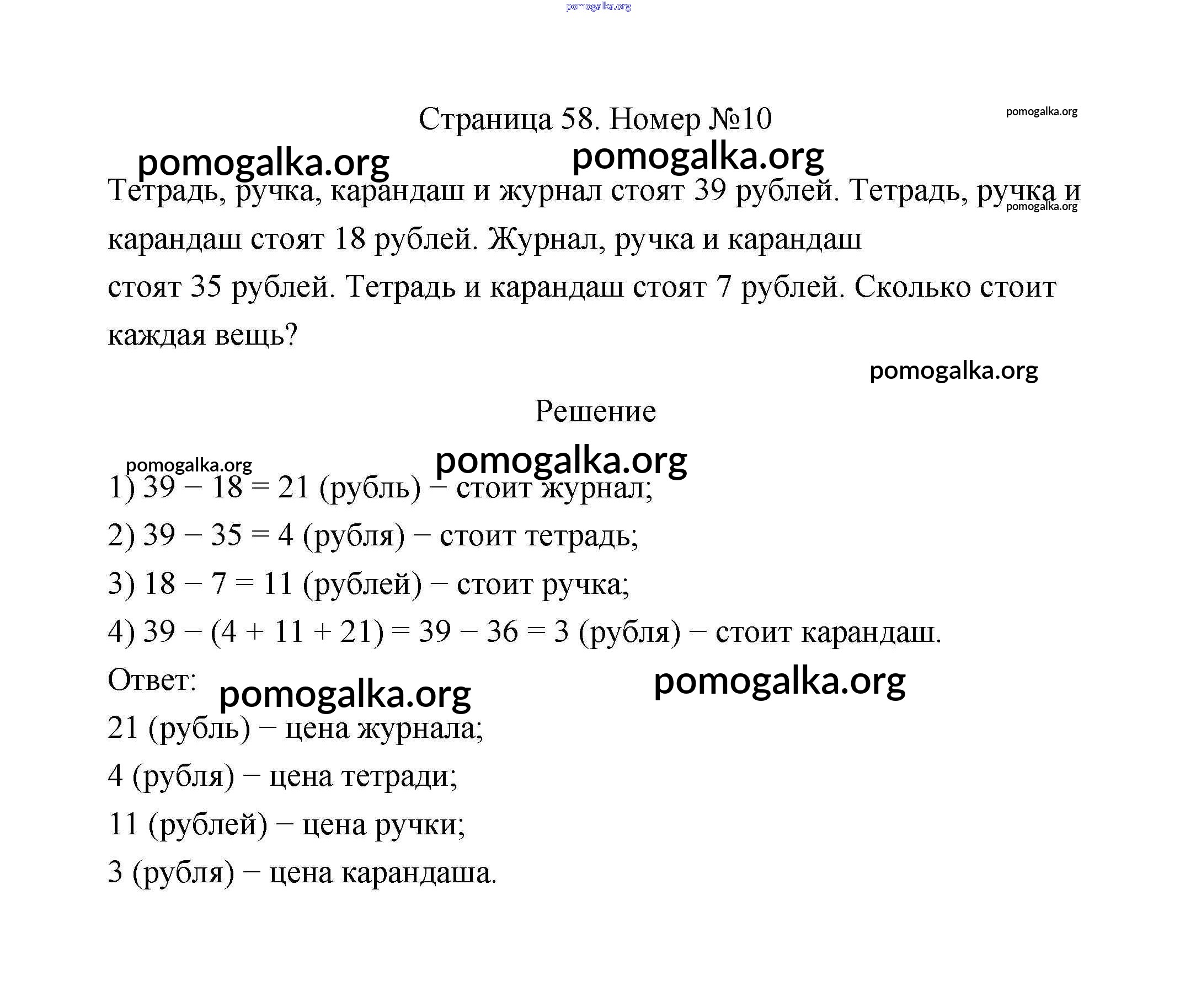 Готовые ответы - Математика 2 класс Дорофеев Г.В. - страницы 58-59 часть 2 10