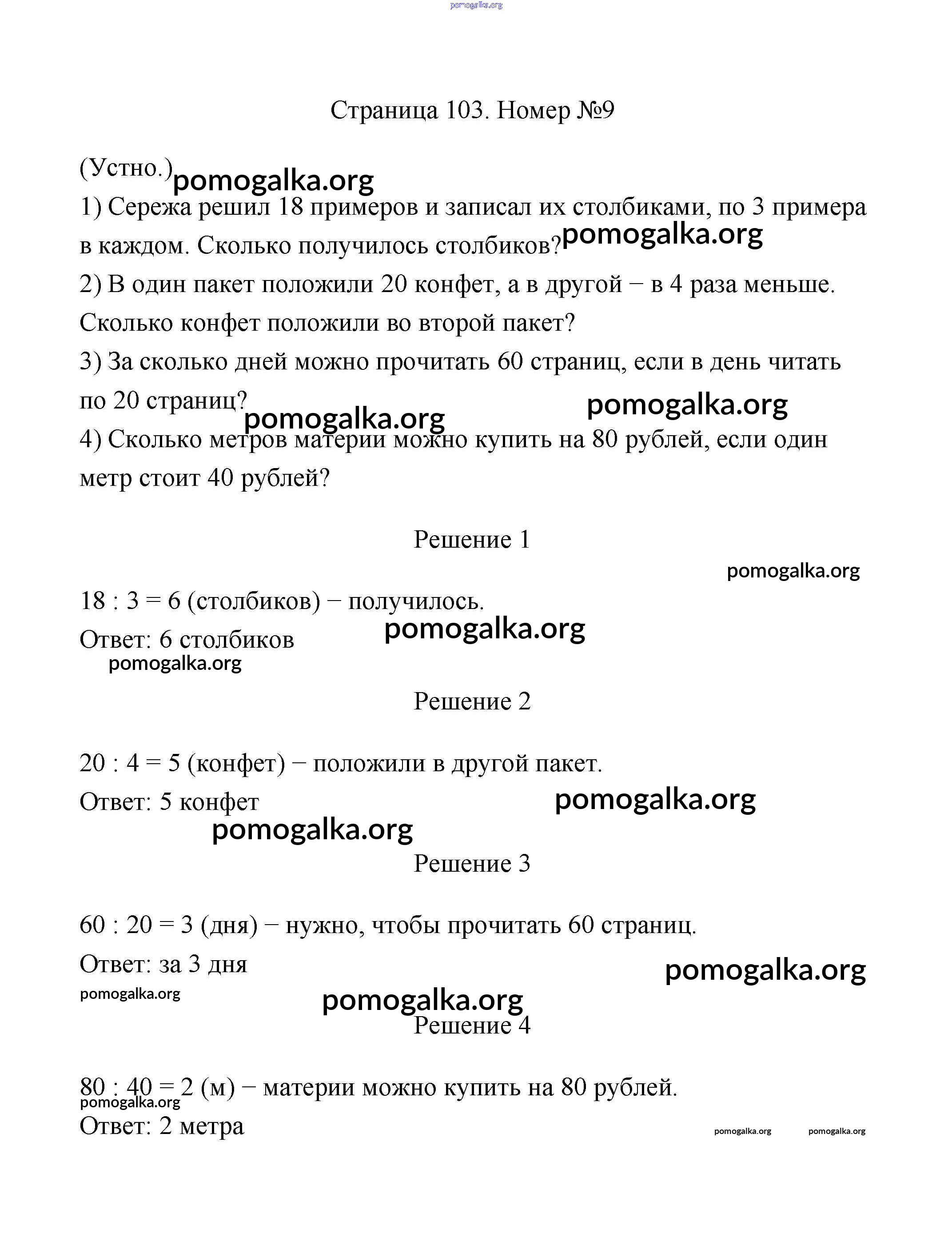 Готовые ответы - Математика 2 класс Дорофеев Г.В. - страницы 103-105 часть 2 9