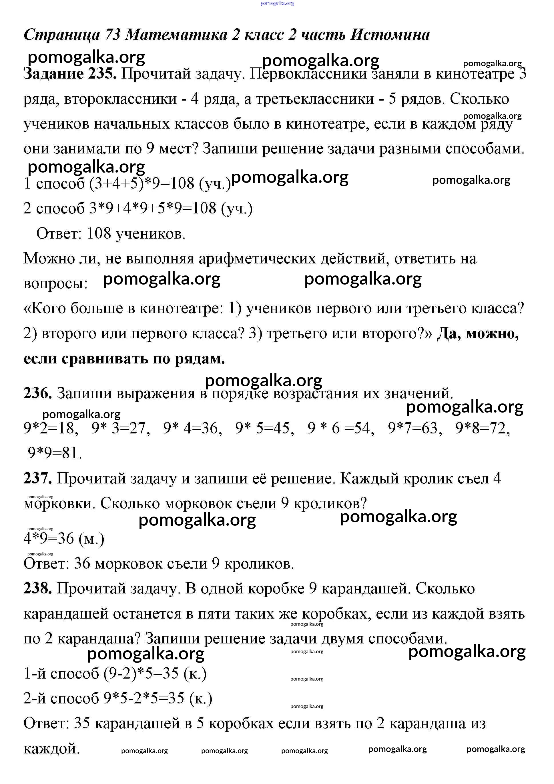 Готовые ответы - Математика 2 класс Истомина - страница 73